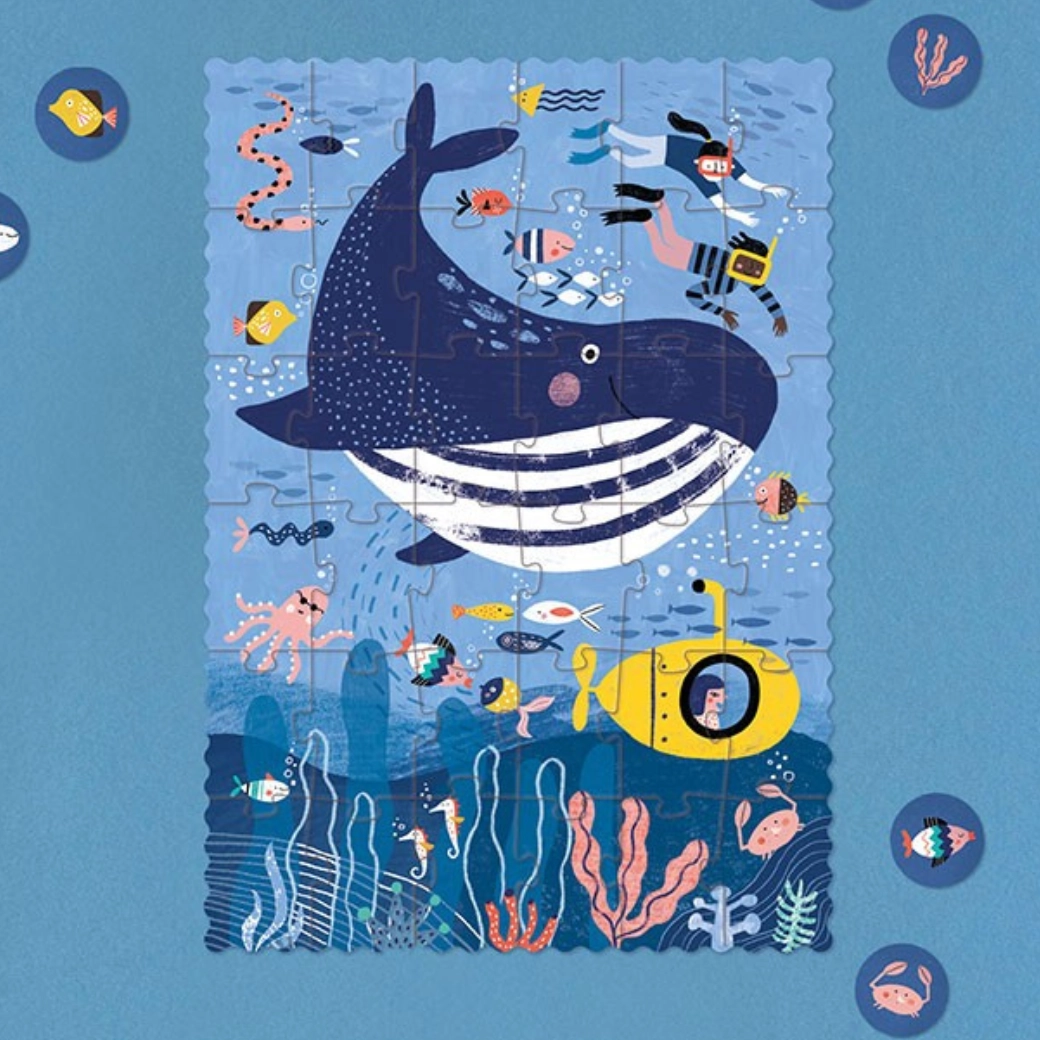 De illustraties met een blauwe vinvis en andere oceaanbewoners zullen kleine natuurliefhebbers bekoren. De hoogwaardige afwerking, kenmerkend voor het merk LONDJI, garandeert een lange levensduur en prettig puzzelen.