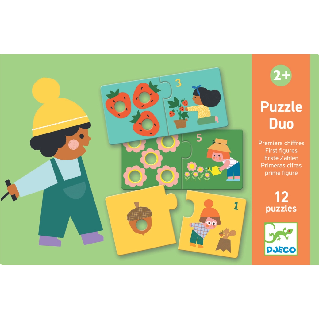 Leer kinderen spelenderwijs cijfers met de Duo Puzzel Eerste Cijfers van Djeco. De paren stukjes worden gekoppeld op basis van hoeveelheid en cijfer, wat logisch denken, fijne motoriek en vroege rekenvaardigheid stimuleert. Ideaal voor een eerste kennismaking met cijfers op een leuke en duidelijke manier.