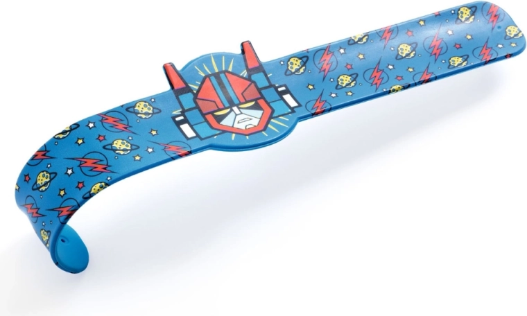 Ontdek de speelse slap-armbanden van DJECO met motieven van superhelden, dinosaurussen, tijgers en robots. Dankzij de flexibele metalen strip met duurzame kunststof coating klapt de armband na een lichte “klik” vanzelf om de pols. Kinderen zijn er dol op door het veilige en snelle omdoen en het opvallende design.