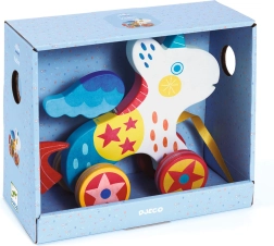 Deze vrolijke trek-eenhoorn van het merk DJECO is de ideale metgezel voor dagelijks ontdekken. Kinderen genieten van de beweging wanneer ze het speelgoed aan het touwtje voorttrekken, terwijl de opvallende kleuren en vriendelijke uitstraling hun verbeelding prikkelen.