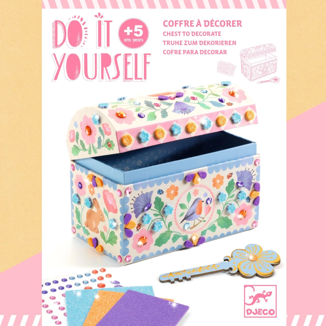 Maak je eigen kist met een geheime bodem en berg je kostbaarheden stijlvol op! Deze creatieve set van Djeco stimuleert de fijne motoriek, creativiteit en fantasie van kinderen. Eenvoudige werkwijze, hoogwaardige materialen en een prachtig resultaat waar kinderen trots op zullen zijn.