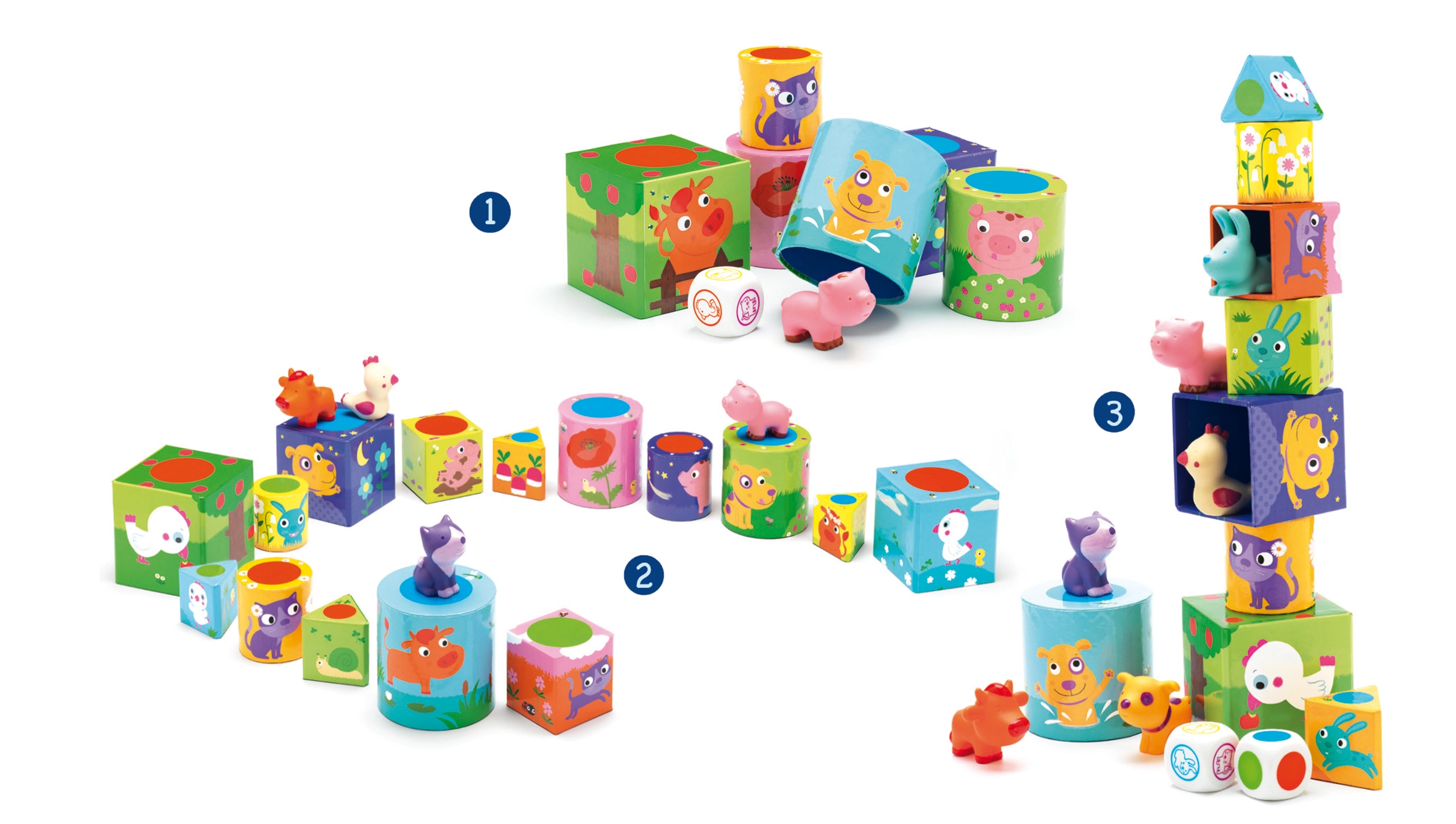 De DJECO Ludanimo set biedt een veelzijdig pakket aan familieplezier. Je vindt er drie verschillende spellen in, die kinderen en volwassenen meenemen van eenvoudige activiteiten tot slimmere uitdagingen. Dankzij de duidelijke spelregels en het aantrekkelijke design doet het hele gezin gemakkelijk mee.
