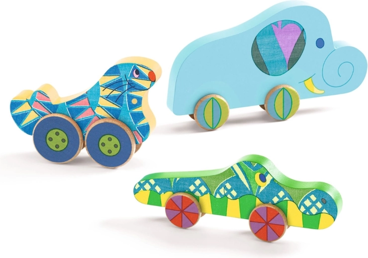 Schattige houten inlegpuzzel voor de allerkleinsten, die na het leggen echt “wegrijdt”! Kinderen beleven plezier met het thema dieren in autootjes en ontwikkelen tegelijk fijne motoriek, logisch denken en oog-handcoördinatie. De hoogwaardige afwerking van Djeco en veilige materialen garanderen een lange levensduur en veel speelplezier.