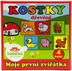 De houten blokpuzzel Mijn eerste diertjes van het merk TEDDIES is een uitstekende keuze voor de eerste puzzels. Vier hoogwaardige houten blokken in een praktische kartonnen doos maken het mogelijk om zes verschillende motieven van huisdieren te leggen. Kinderen hebben plezier met het leggen van de afbeeldingen en met het bouwen van torens, kastelen of hokjes voor de diertjes.