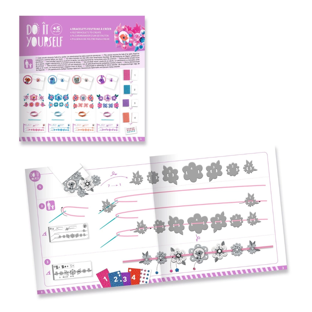 Stimuleer de verbeelding en de fijne motoriek met de creatieve DIY-set van DJECO. Zachte vilten onderdelen, kleurrijke bloemen, blaadjes en diermotieven worden moeiteloos samengevoegd tot prachtige vriendschapsarmbanden. Elastische bandjes en linten zorgen voor comfortabel dragen en eenvoudig sluiten.