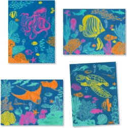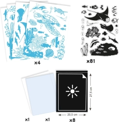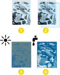 Ontdek de magie van blauwdrukfotografie met de Djeco creatieve set Onderwaterwereld! Met de techniek van cyanotypie maken kinderen hun eigen originele afbeeldingen met motieven van zeedieren. De set stimuleert creativiteit, fijne motoriek en plezier in het creëren.