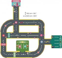 Deze grote wegpuzzel biedt kinderen eindeloze mogelijkheden om banen te bouwen voor hun favoriete autootjes. De stukken passen perfect in elkaar dankzij de puzzelvorm en creëren een compleet netwerk van straten met kruispunten, bochten en een parkeerzone. De hoogwaardige print met verkeerselementen helpt op een natuurlijke manier verkeersborden en -regels te leren.