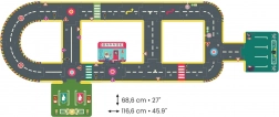 De set bevat verschillende vormen stukken voor het maken van rechte stukken, bochten, kruispunten en een rotonde. Kleurrijke symbolen, zebrapaden en verkeerslichten maken het spel realistischer en leuker. Dankzij de stevige afwerking is het bestand tegen intensief dagelijks spelen.
