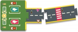 De graphics van rijstroken, zebrapaden, verkeerslichten en borden bieden kinderen een authentieke verkeerssituatie en leren ze de spelregels op de weg.
