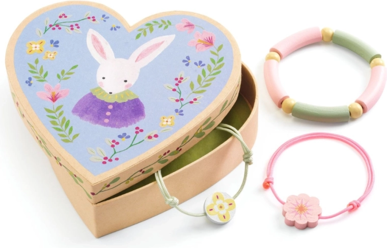 Een schattig hartvormig cadeaudoosje van Djeco met daarin drie fijne armbandjes voor kleine fashionista’s. Ideaal als cadeau dat plezier brengt en de kinderlijke vreugde in verkleden ondersteunt. 3 elegante armbandjes, een prachtig konijntjesmotief en een praktisch hartvormig doosje voor veilige opslag.