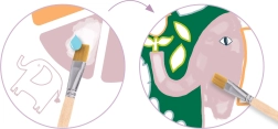 - palet, penseel, voorgetekende afbeeldingen (junglethema)