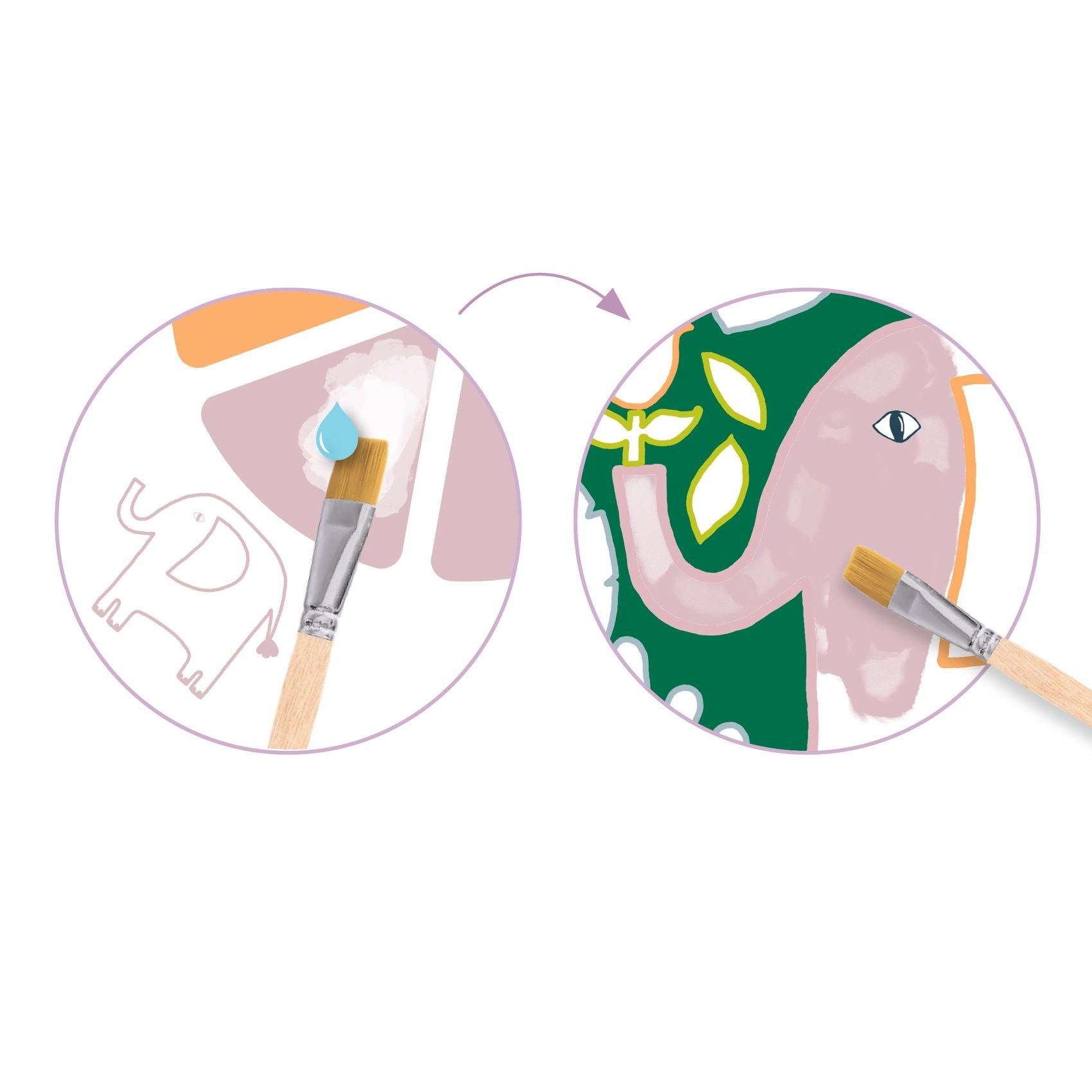 Ontdek de magie van creëren met de creatieve set Djeco schilderen met palet in de jungle. Dankzij de voorgetekende afbeeldingen van jungledieren genieten kinderen van schilderen zonder frustratie en met een prachtig resultaat. Het ergonomische palet en het bijgeleverde penseel maken het werk gemakkelijker voor kleine handjes.