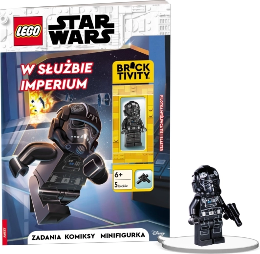 Boek met strip, opdrachten en puzzels; exclusieve LEGO-minifiguur van een TIE-pilote