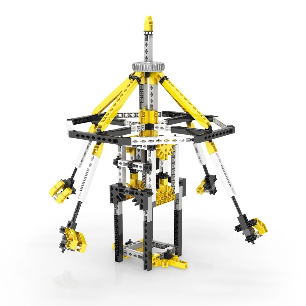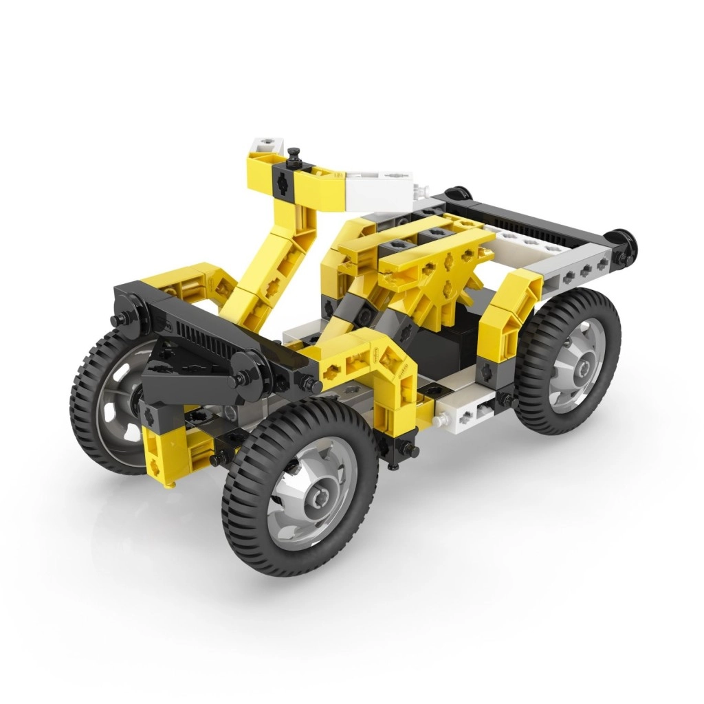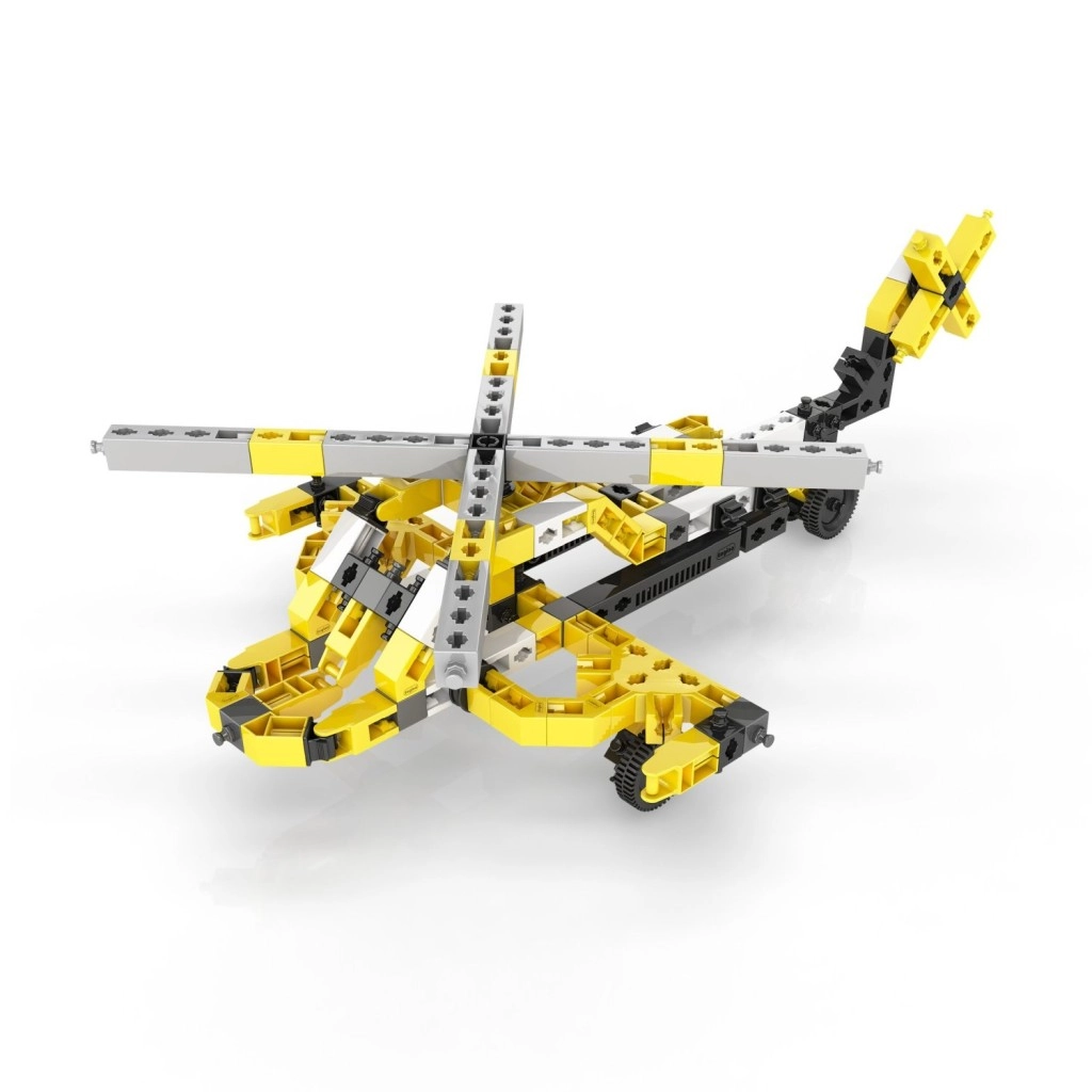 Bouw auto's, helikopters, kranen en slimme mechanismen. Elk model oefent andere technische principes en stimuleert creatief denken.