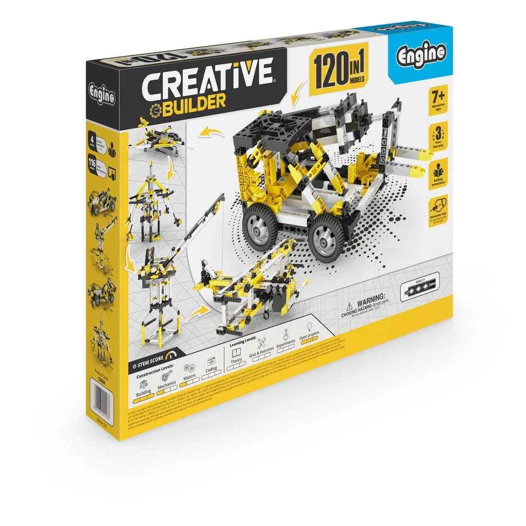 Bouwen is eenvoudig dankzij de gedrukte handleiding voor het eerste model en de interactieve Engino kidCAD-app voor de overige 119 modellen, waarin je constructies kunt draaien, inzoomen en in 3D verkennen. De set is compatibel met andere ENGINO-sets, waardoor de uitbreidingsmogelijkheden bijna onbeperkt zijn.