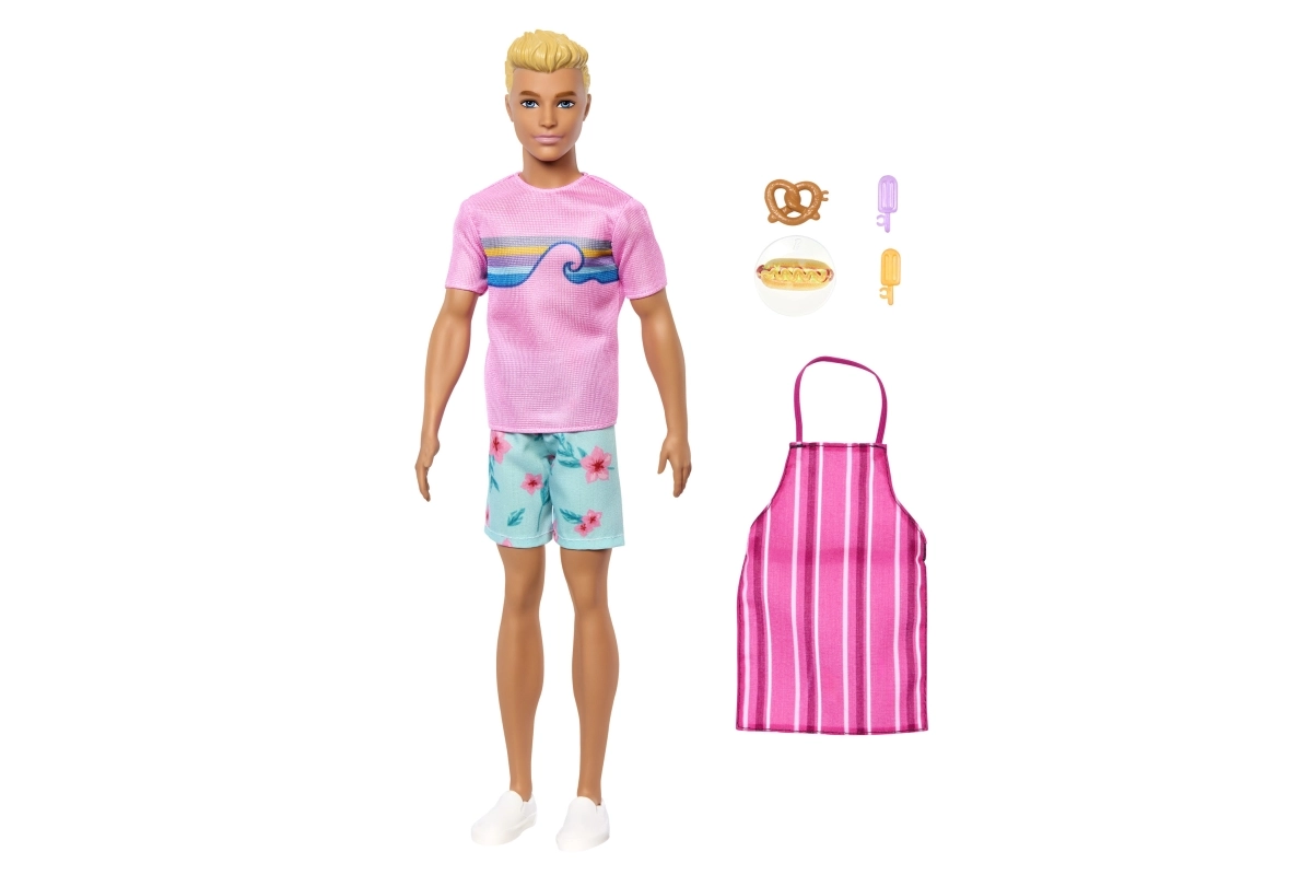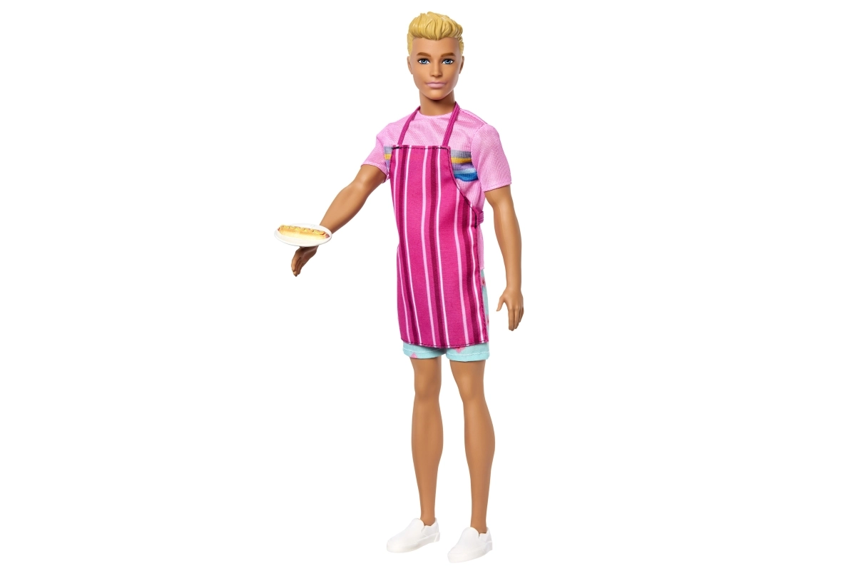 Trek Ken het gestreepte schort aan en laat hem lekkernijen serveren – de pretzel, hotdog en twee ijsjes ondersteunen creatieve scènes.