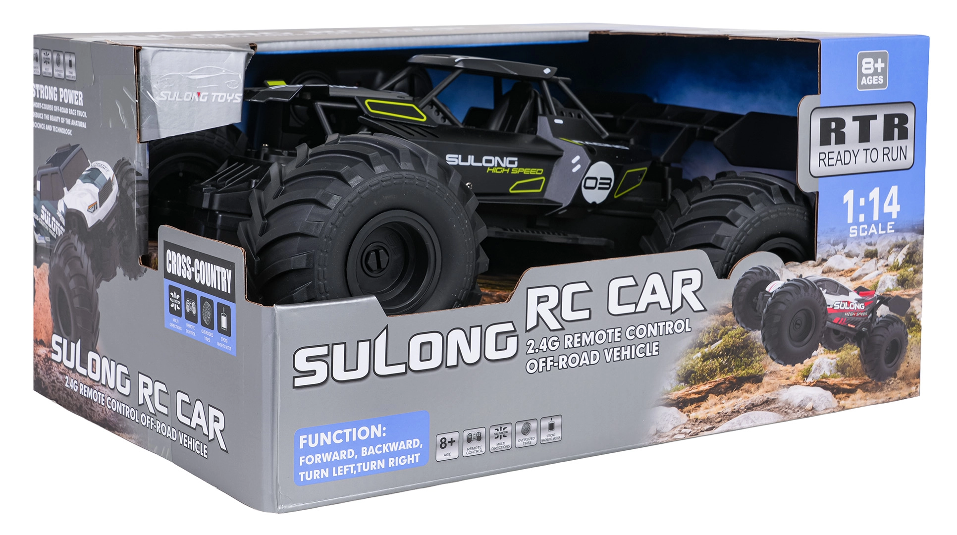 Grote offroad-banden met diep profiel kunnen overweg met grind, gras en oneffenheden. Het 2,4 GHz systeem voorkomt storingen, zodat je met meerdere auto’s tegelijk kunt rijden. Het model is eenvoudig in alle richtingen te bedienen en is een uitstekende keuze voor jonge liefhebbers vanaf 8 jaar.
