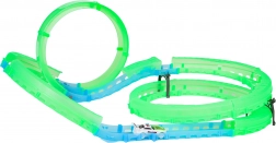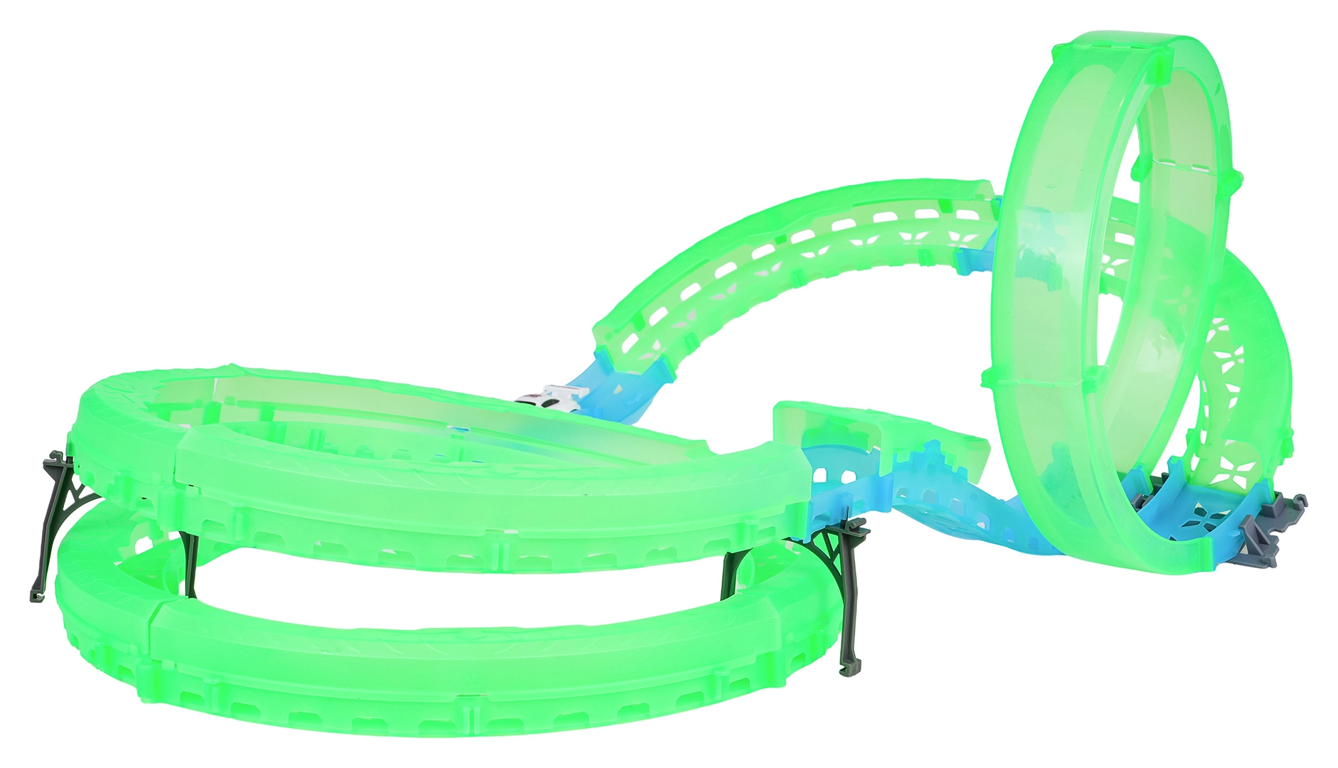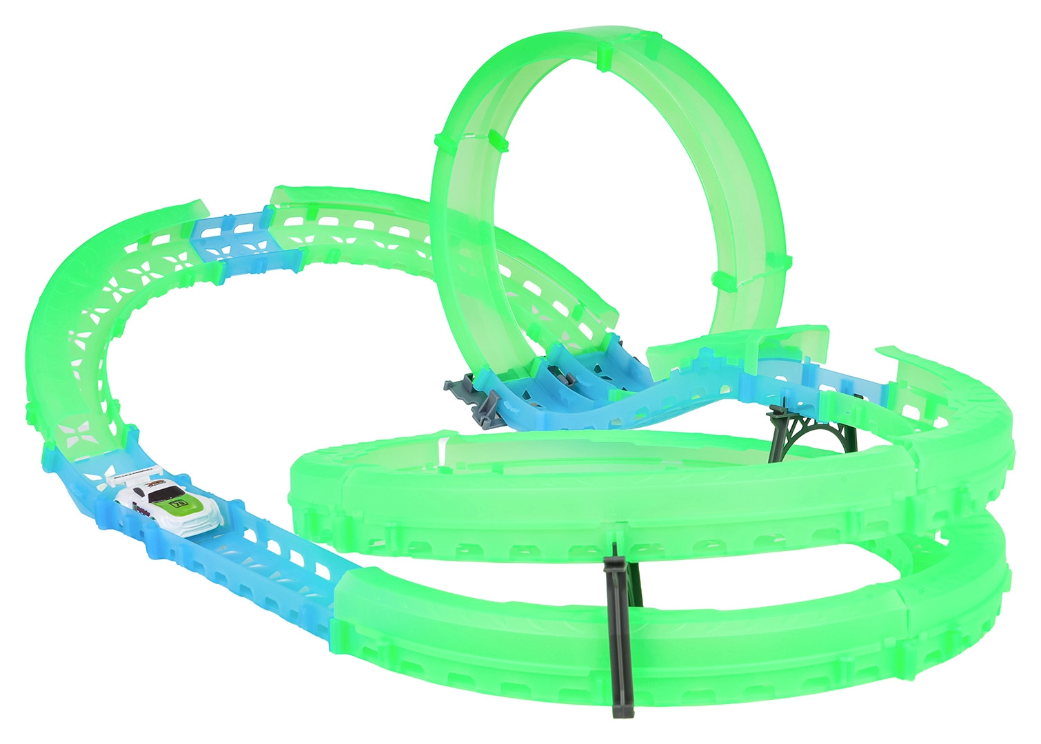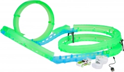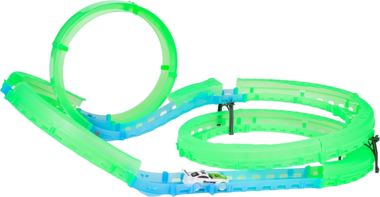 Deze grote lichtgevende racebaan verandert de kinderkamer in een actiecircuit. De fluorescerende delen gloeien prachtig na belichting en het autootje met LED-effecten laat tijdens het rijden lichtsporen achter. Dankzij het eenvoudige kliksysteem bouwen kinderen makkelijk hun eigen baan en kunnen ze meteen van start.