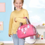 De tas bevat een verschoonmat, een reserve luier en een poederdoosje – kinderen hebben zo de complete uitrusting bij de hand voor de verzorging van hun pop.