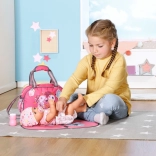 Deze stijlvolle luiertas voor BABY born-poppen is ontworpen voor het gemakkelijk organiseren van alle benodigdheden voor uitstapjes en dagelijkse verzorging. Kinderen vinden er een verschoonmat, luier en poederdoosje in, en er blijft nog ruimte over voor extra spulletjes die handig zijn voor onderweg.