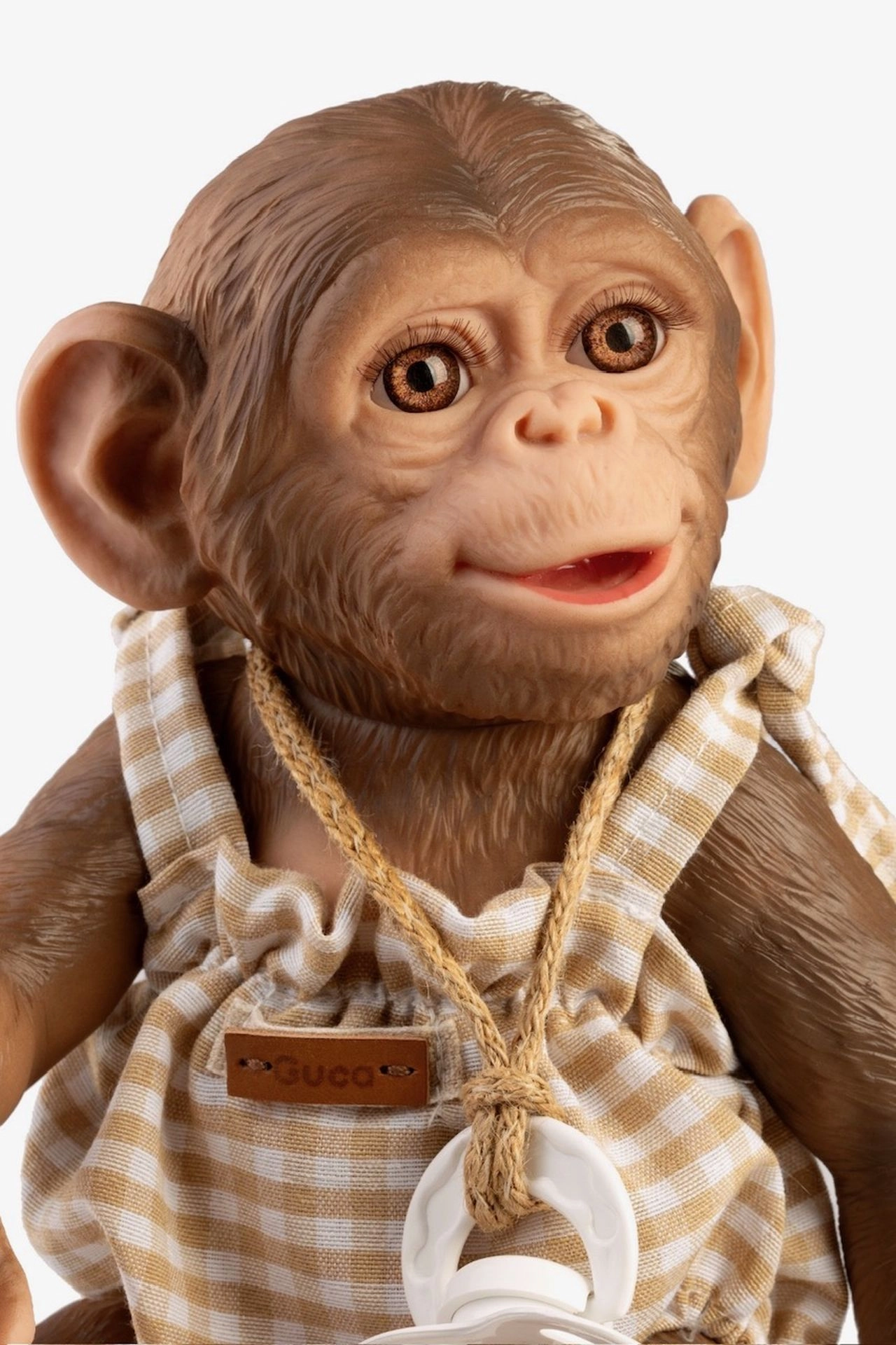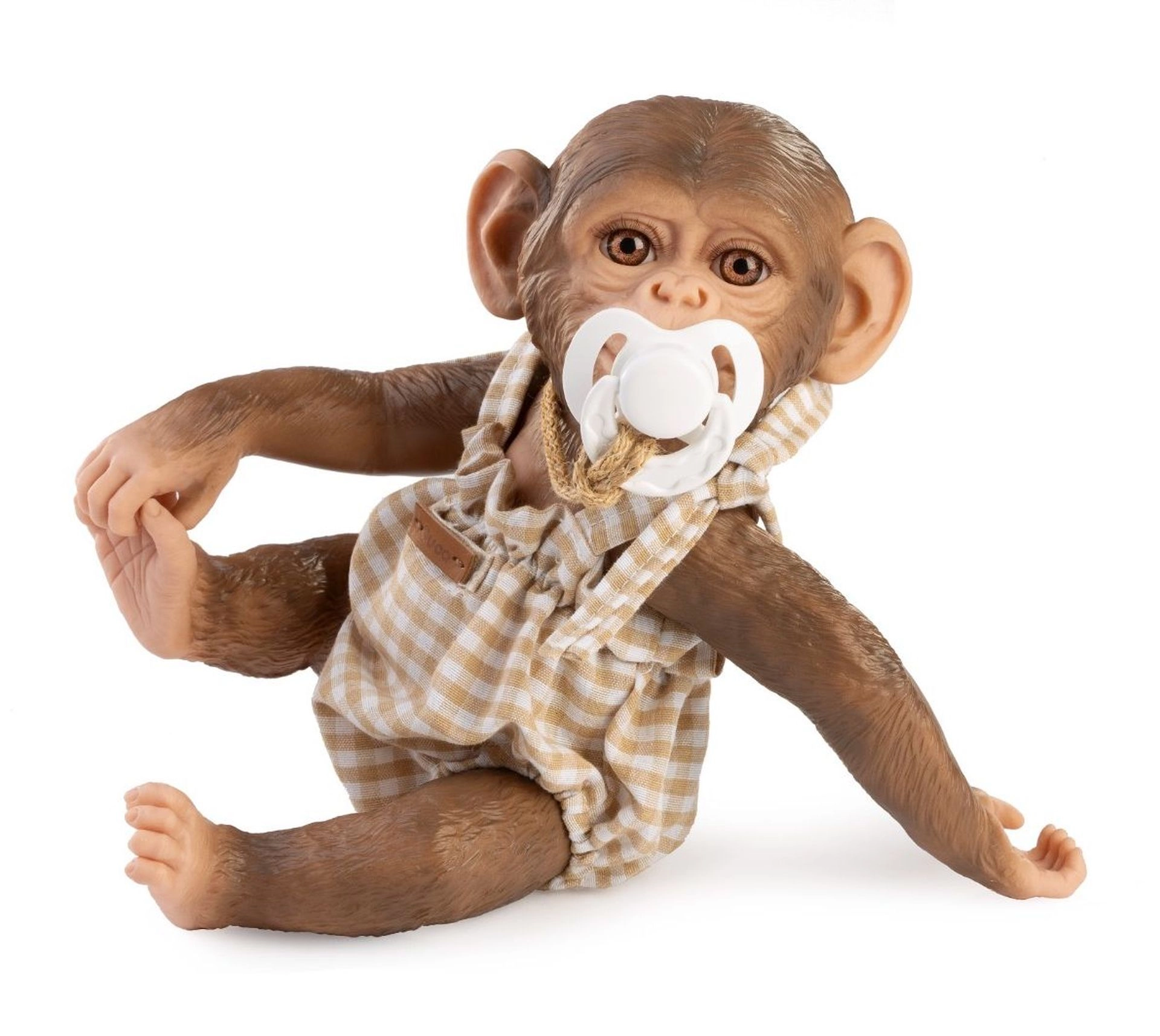 Stijlvolle tweedelige set voor aapjesbaby REBORN in maat 32 cm, inclusief comfortabele outfit en een speen als lief accessoire. Handgemaakt in Spanje voor hoogwaardige afwerking en subtiele details die zowel kinderen als verzamelaars zullen bekoren.
