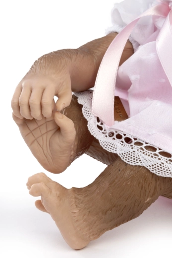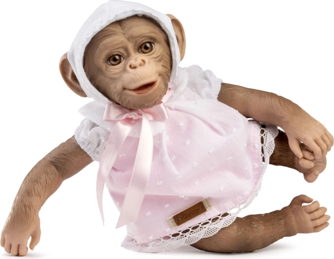Jurk, bloomer en gebreide muts vormen een harmonieuze outfit die het Reborn-aapje charme en comfort geeft, zowel tijdens het spelen als bij het tentoonstellen.