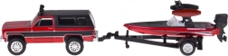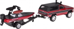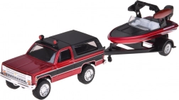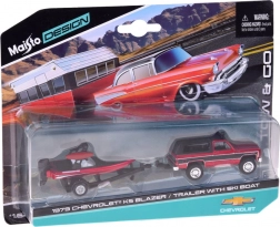 Deze gelicentieerde set van Maisto combineert de klassieke CHEVROLET K5 BLAZER 1979 in rood-zwart met een aanhanger en een elegante motorboot. De metalen carrosserie, nauwkeurige proporties en authentieke details van exterieur en interieur zullen elke fan van Amerikaanse klassiekers bekoren.