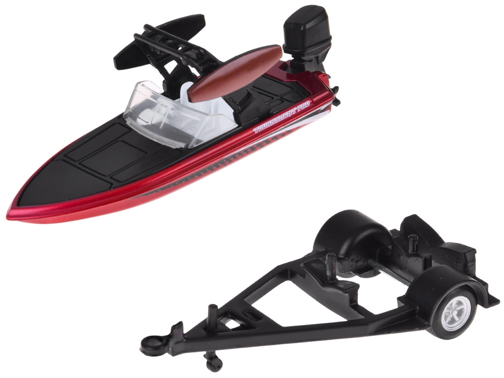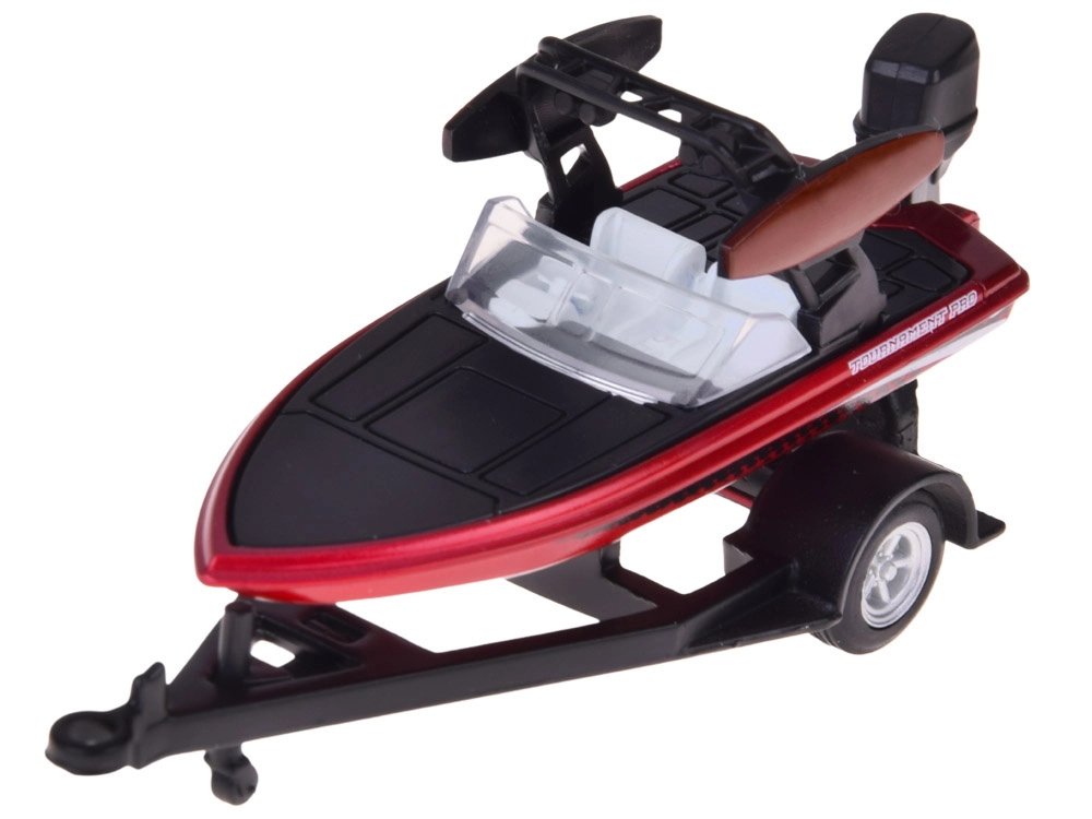 Het model biedt een functionele trekhaak met de mogelijkheid om de aanhanger los te koppelen, een realistisch uitgewerkte boot met buitenboordmotor en soepel rollende wielen voor vloeiende ritten. Staat geweldig in een vitrine en is tegelijk bestand tegen dagelijks spelen.