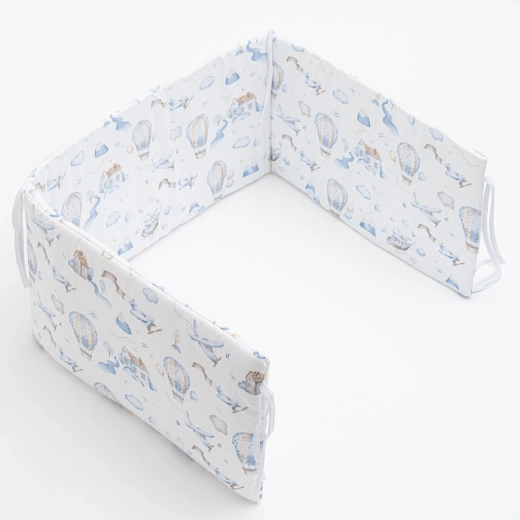 Praktische linten zorgen voor een snelle en zekere bevestiging aan het bedje. De kleurechte print met rustgevende motieven bladdert niet en vlekt niet op kleding. De hypoallergene vulling remt de groei van micro-organismen en schimmels, waardoor de bumper ook geschikt is voor gevoelige kinderen.