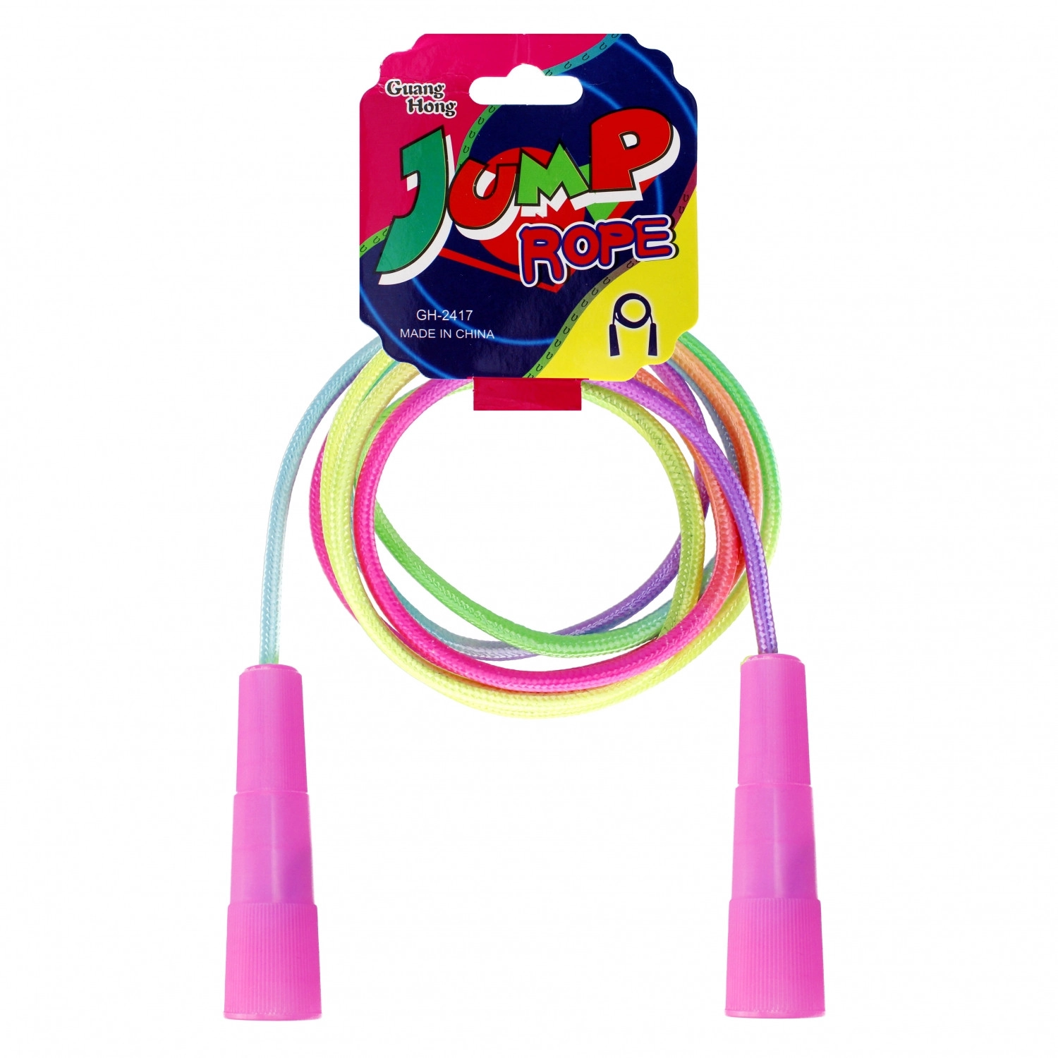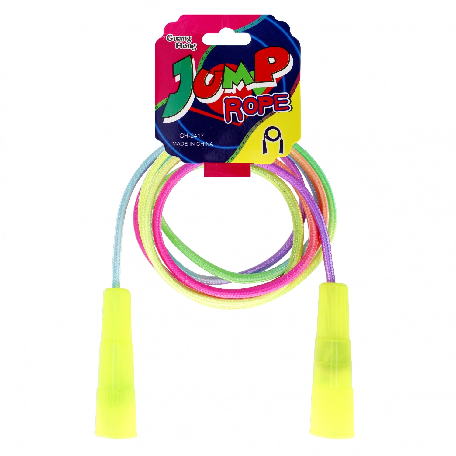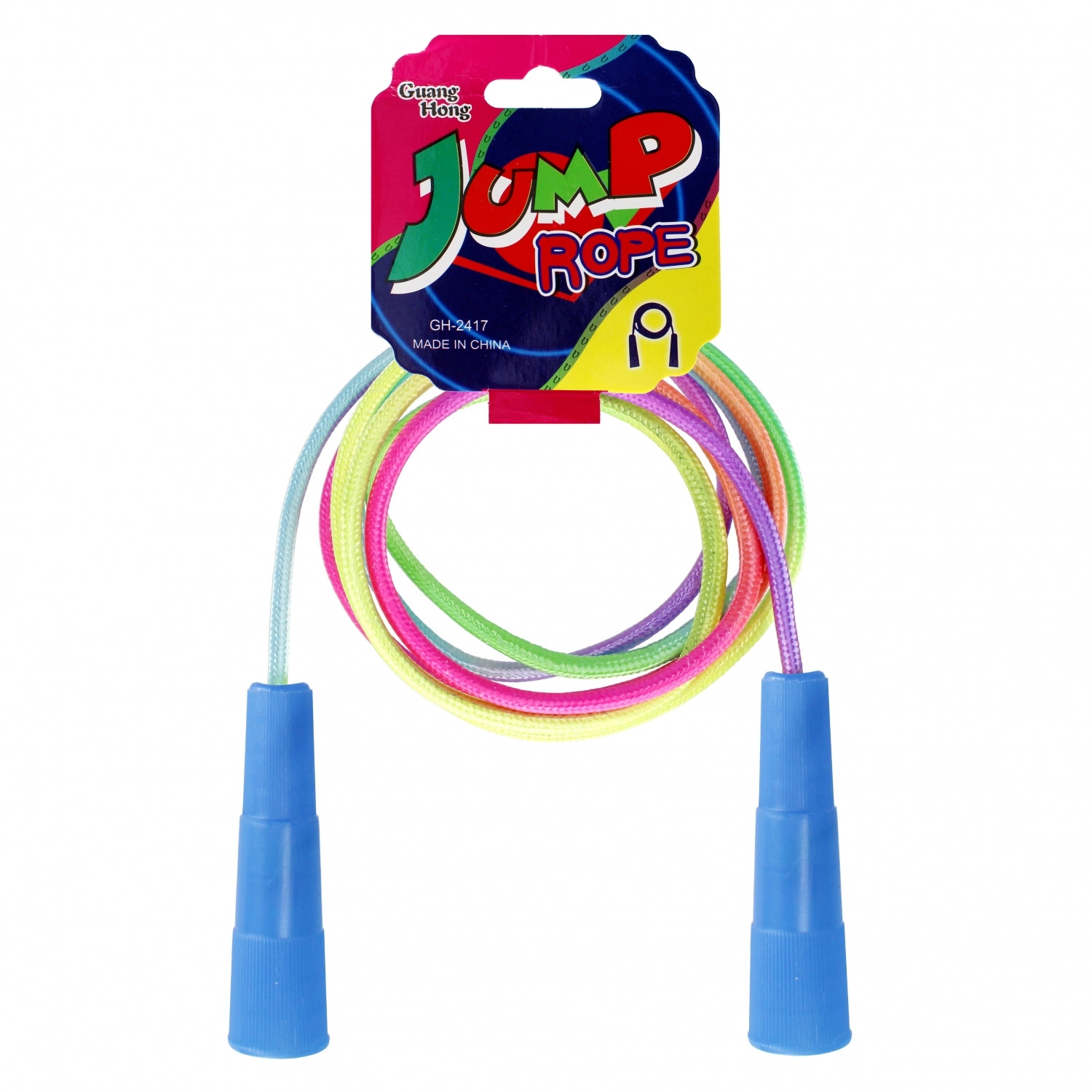Licht en leuk neon springtouw voor kinderen met een lengte van 207 cm stimuleert beweging, coördinatie en gezonde cardio. Dankzij de heldere kleuren en comfortabele kunststof handgrepen ideaal voor op het speelplein en thuis. Geschikt vanaf 3 jaar. Prijs per stuk, meerdere kleurvarianten.