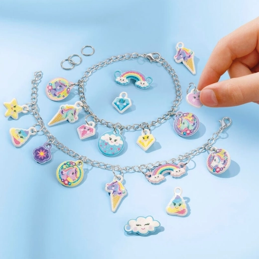 Ontdek het plezier van DIY-sieraden! Met deze creatieve set ontwerp en maak je moeiteloos originele armbanden met fantastische puffy stickers en glanzende details. Ideaal als cadeau voor kleine makers die van eenhoorns en sprankelende accessoires houden.