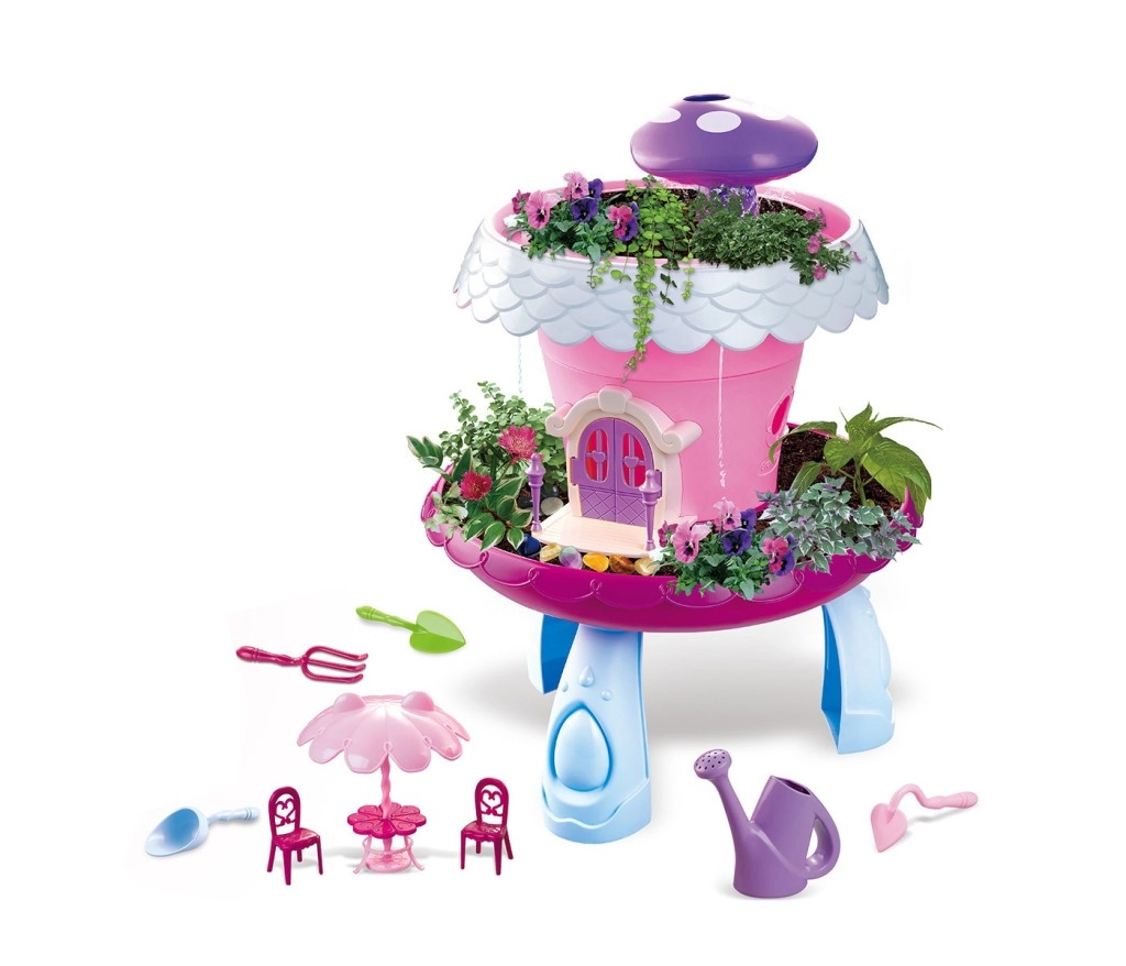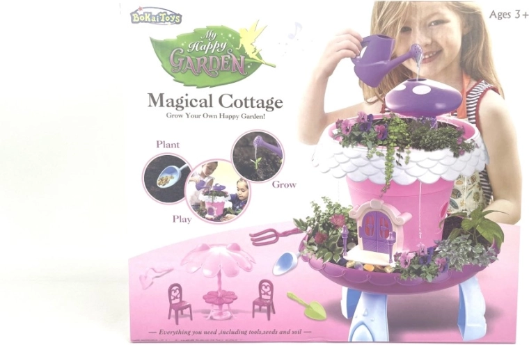 In de verpakking vind je alles voor direct kweken: bloempotjes, zakjes met potgrond, een zakje zaadjes en een waterreservoir. Er is ook een gietertje, vier tuingereedschappen voor het ontwikkelen van de fijne motoriek en decoraties die een knusse sfeer creëren. Licht- en muziekeffekten op LR44-batterijen (inbegrepen) geven het spel een interactieve dimensie en stimuleren de fantasie.
