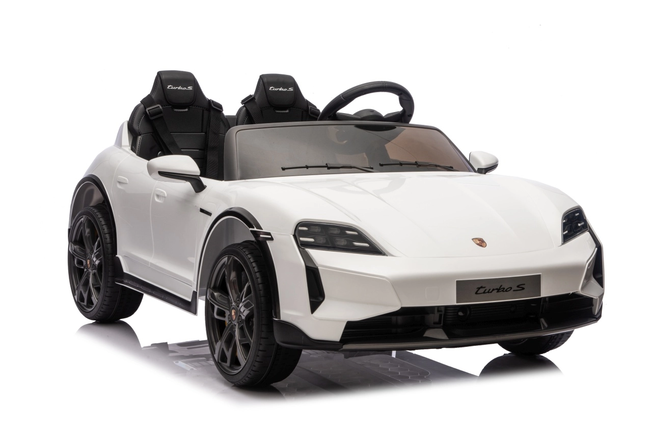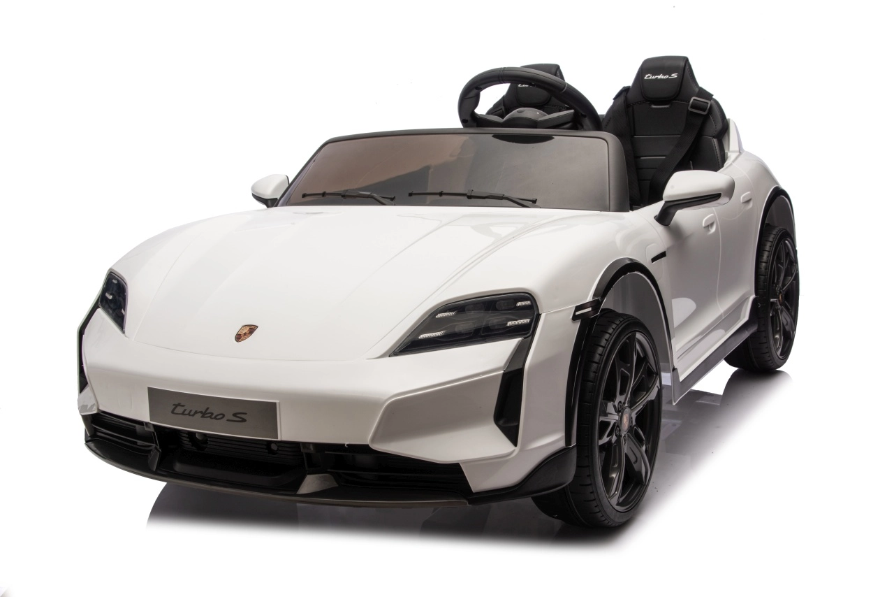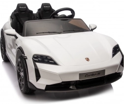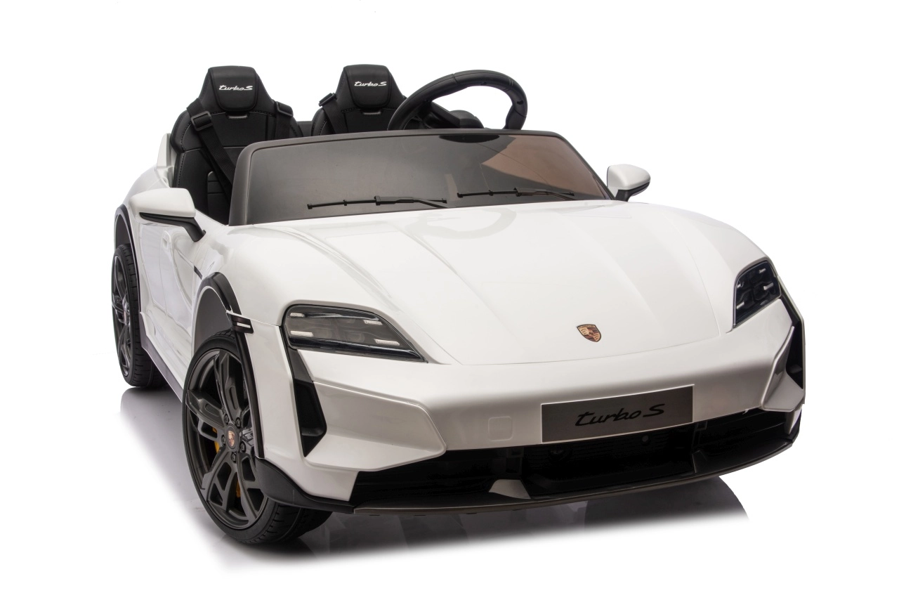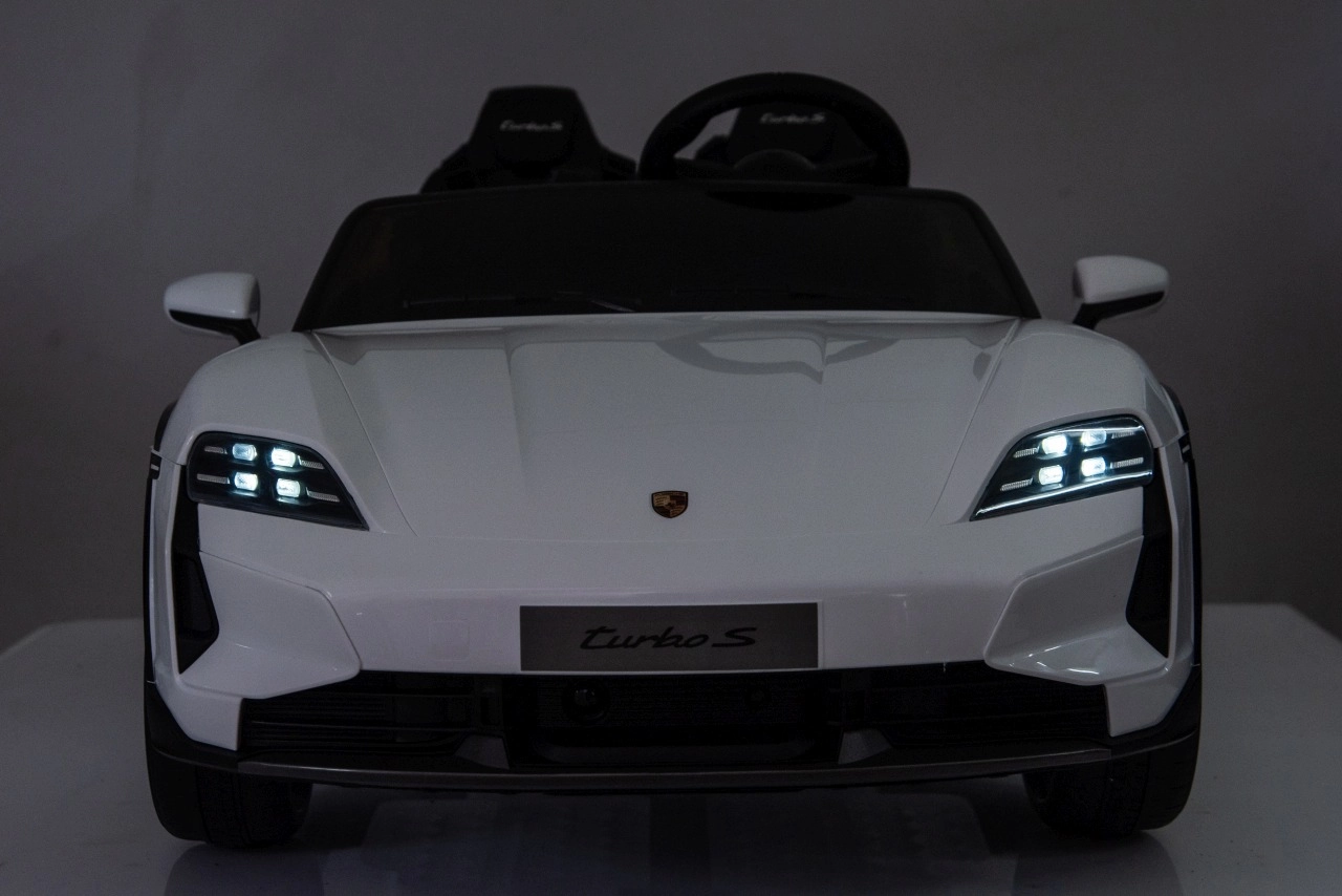 Stijlvolle elektrische kinderrit met officiële PORSCHE-licentie! De witte Taycan Turbo S biedt twee 90 W motoren, een 24 V 7 Ah accu, zachte EVA-wielen, openende deuren en een kunstlederen stoel met veiligheidsgordels. Ouders waarderen de 2,4 GHz afstandsbediening met Stop-functie, kinderen genieten van de LED-verlichting en het audiopaneel met MP3, FM-radio en Bluetooth.