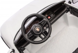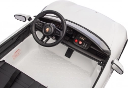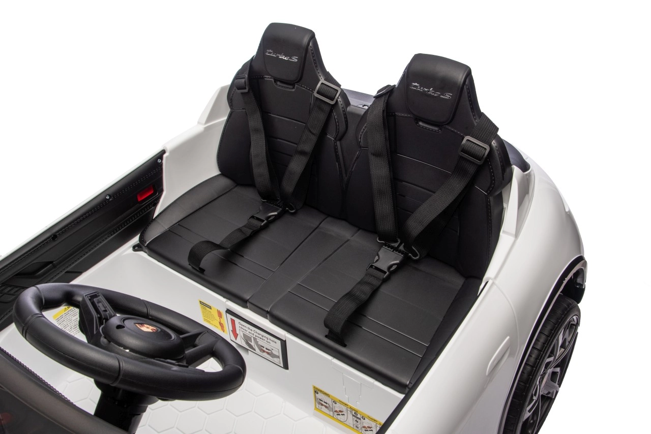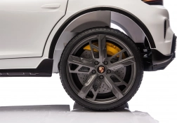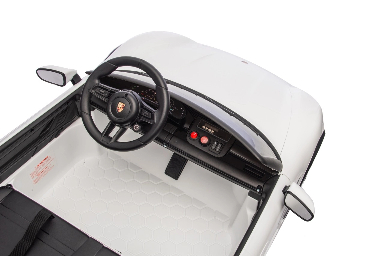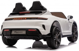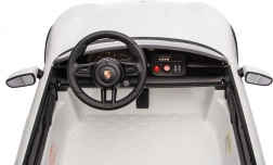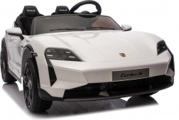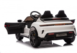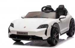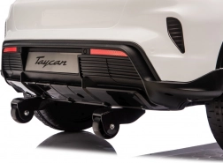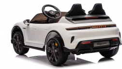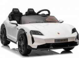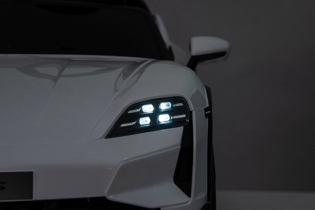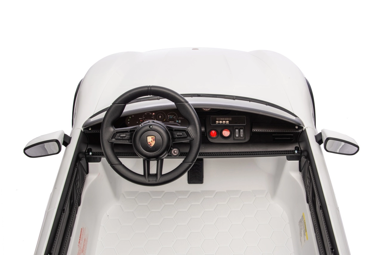Stijlvolle elektrische kinderrit met officiële PORSCHE-licentie! De witte Taycan Turbo S biedt twee 90 W motoren, een 24 V 7 Ah accu, zachte EVA-wielen, openende deuren en een kunstlederen stoel met veiligheidsgordels. Ouders waarderen de 2,4 GHz afstandsbediening met Stop-functie, kinderen genieten van de LED-verlichting en het audiopaneel met MP3, FM-radio en Bluetooth.