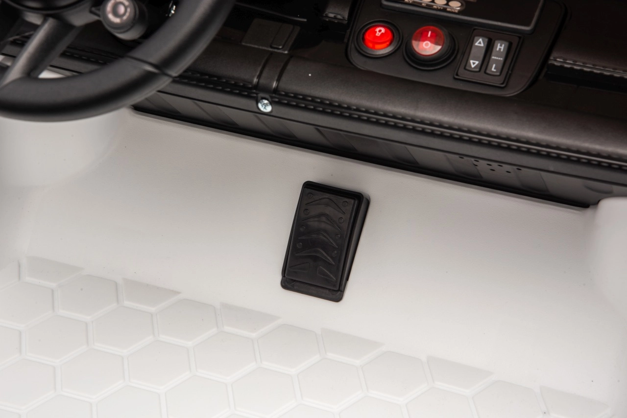 De 2,4 GHz afstandsbediening voor ouders biedt rust en controle – kies een van de 3 snelheden en activeer indien nodig de veiligheidsknop Stop. Kinderen worden enthousiast van de lichtscène met LED-verlichting en het multimediapaneel: MP3, FM-radio, voorgeïnstalleerde melodieën, claxon en Bluetooth voor favoriete liedjes.