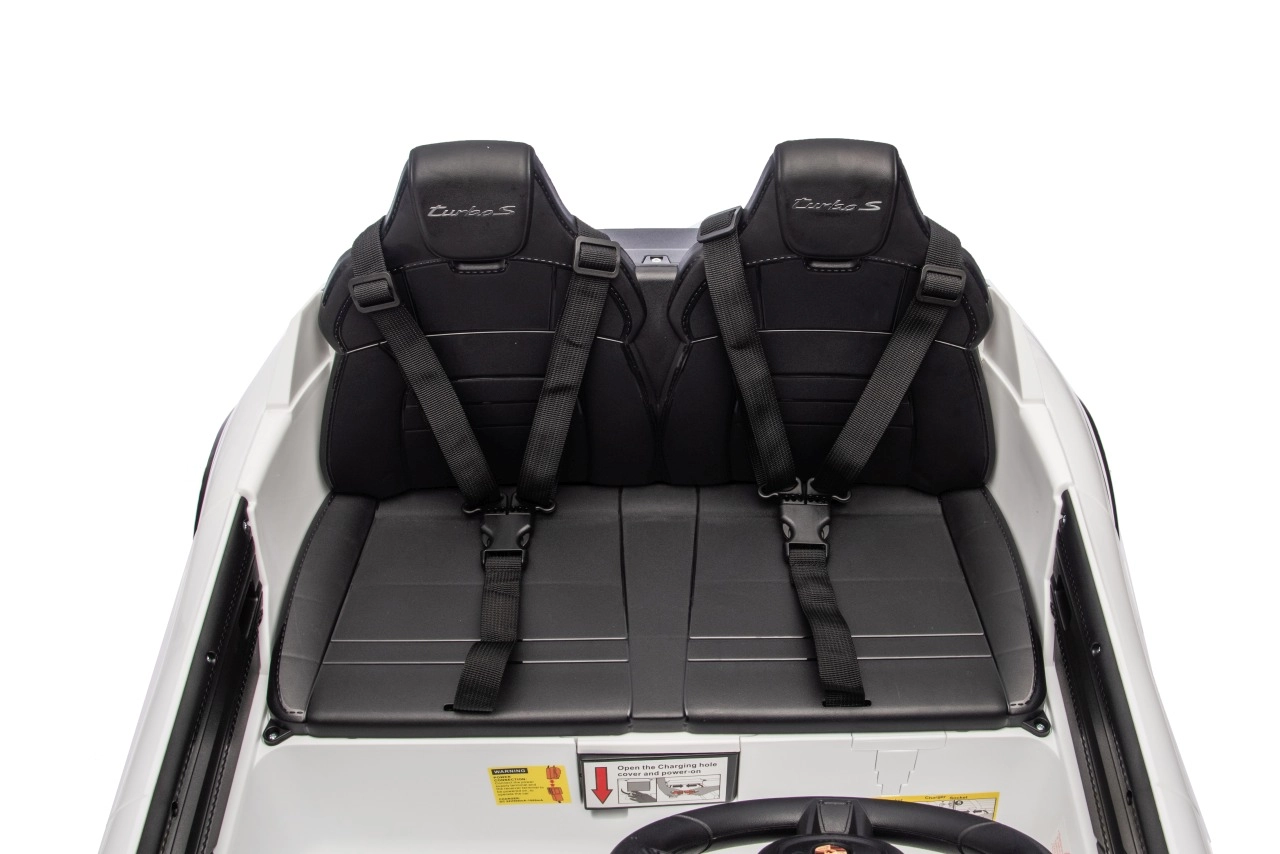 Geniet van een realistische rijervaring met de elektrische kinderauto PORSCHE Taycan Turbo S. Dankzij de krachtige 24 V aandrijving (2×90 W) en zachte EVA-wielen rijdt hij soepel en comfortabel, zowel op bestrating als op glad asfalt. De openende deuren maken instappen eenvoudig en veiligheid wordt verzekerd door de gordels op de comfortabele stoel van zwarte eco-leer.
