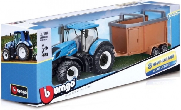 Duik in de wereld van boerderijmachines met het tractor model New Holland T7.270. Deze authentieke replica is ontworpen met oog voor detail, van de robuuste zwarte banden tot de witte velgen en de cabine opbouw.
