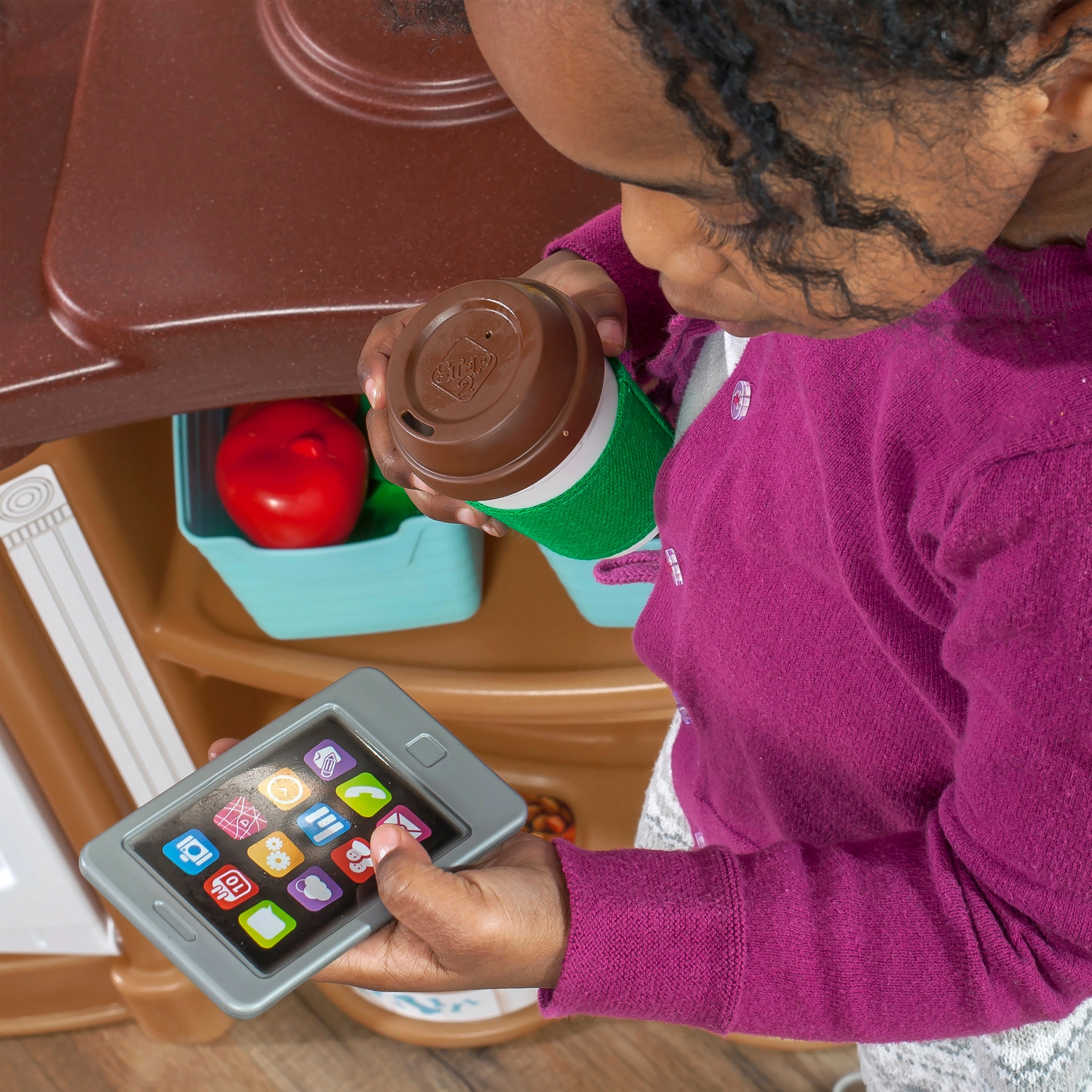 De STEP2 kinderkeuken is gemaakt voor kleine chef-koks die graag volwassenen nadoen. De realistische elektronische kookplaat met licht en kooksounds, te openen ovendeur, magnetron en koelkast en het werkende koffiezetapparaat met capsules veranderen elk spel in een authentieke culinaire ervaring.