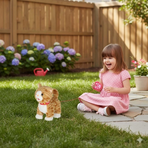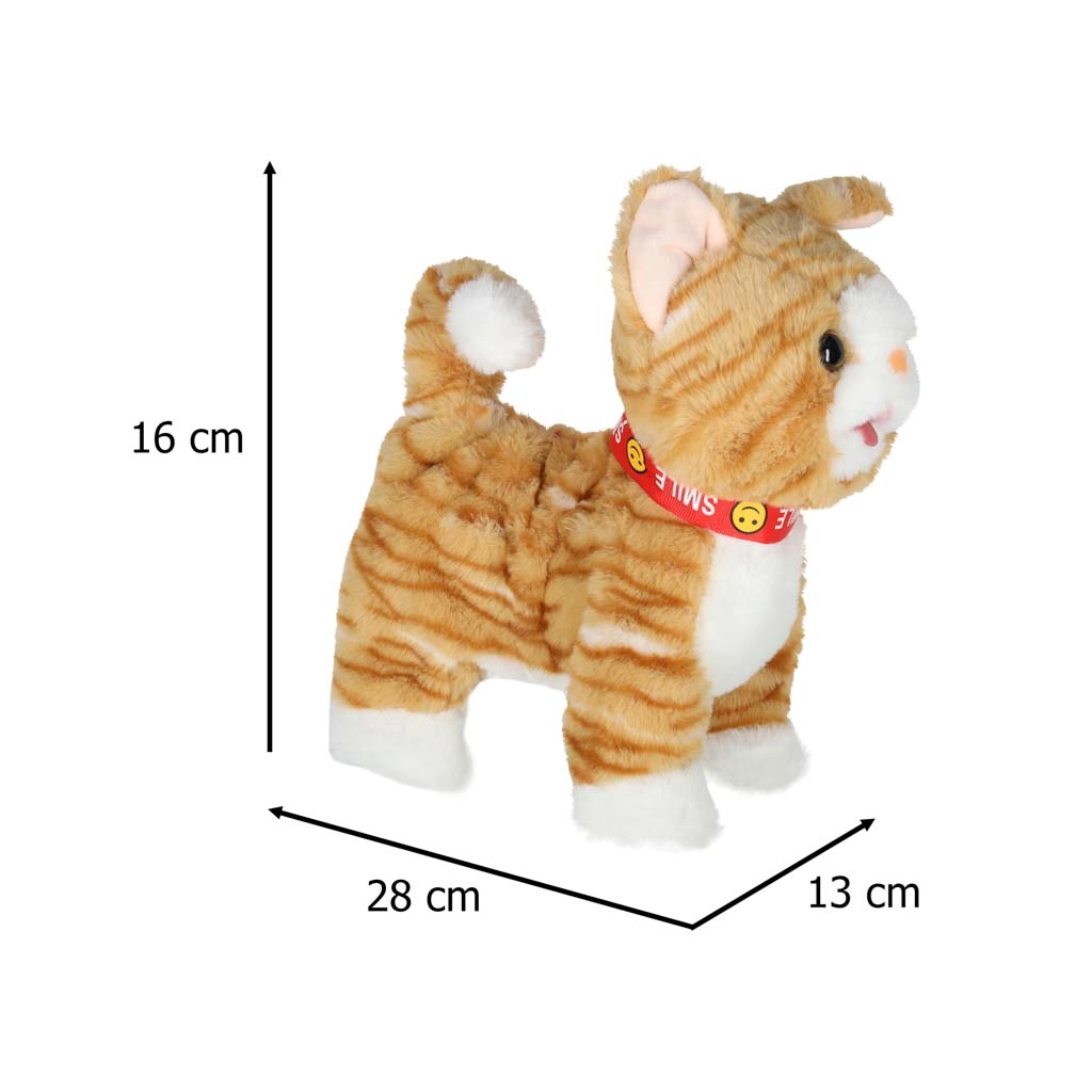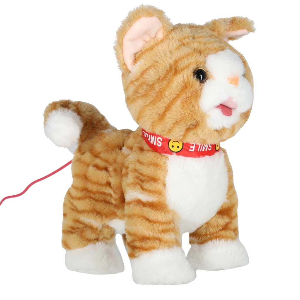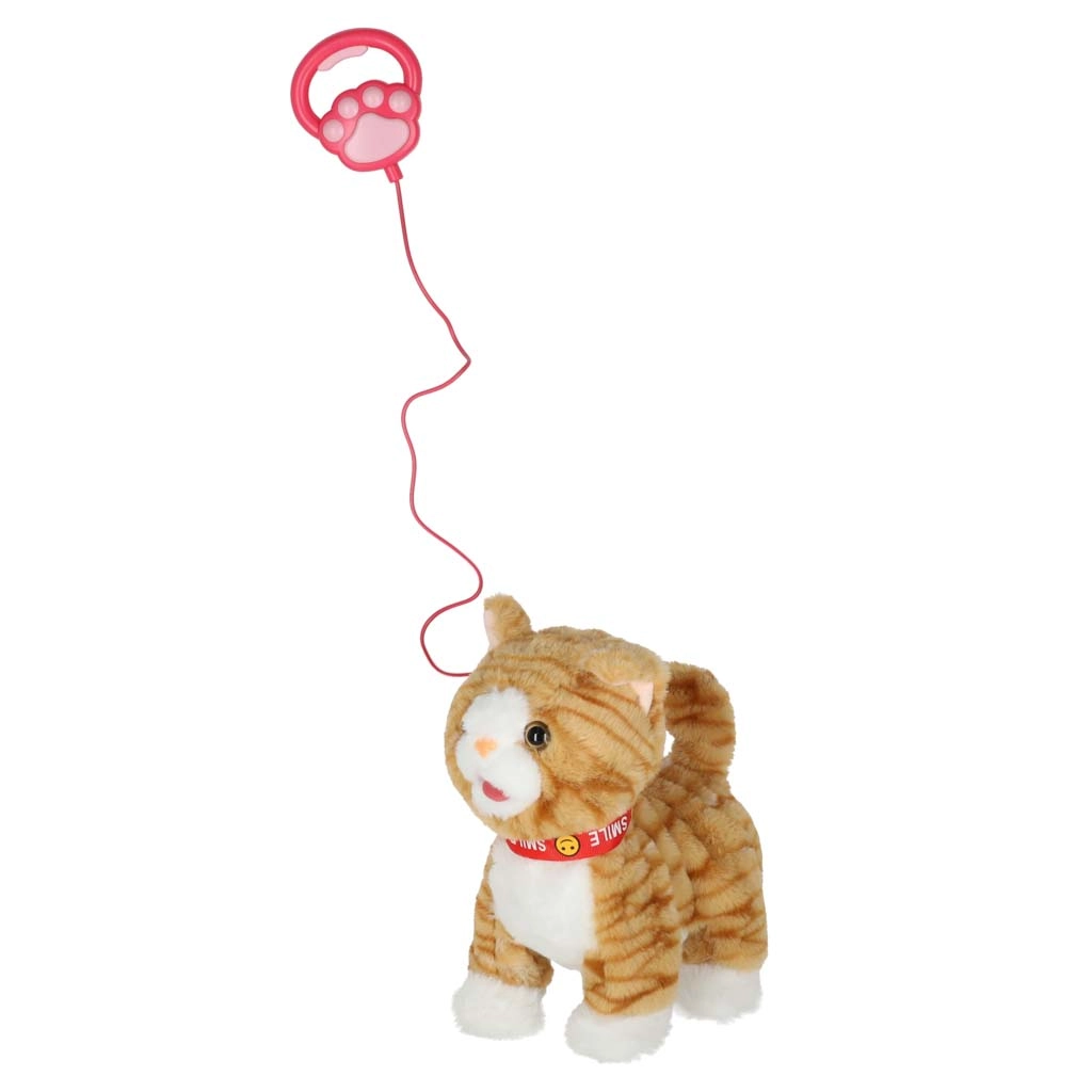 Een schattige interactieve pluche kat aan de lijn die elk kind vanaf 3 jaar zal verrassen. Bij het indrukken van de controller loopt ze naar voren, miauwt, kwispelt met haar staart en beweegt haar hoofd en tong. De zachte pluche afwerking nodigt uit om te knuffelen en te spelen dat je voor een huisdier zorgt.