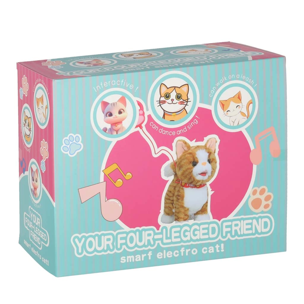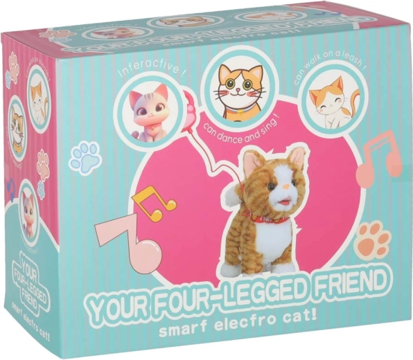 Op zoek naar een knuffelige speelgoedvriend die ook fantasie en actief spel stimuleert? Deze interactieve kat heeft een zacht, aangenaam harig lichaam, een kleurrijke halsband en een handige handcontroller in de vorm van een poot. Na het indrukken van de knop begint de kat te lopen, begeleid door geluiden en melodieën.