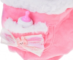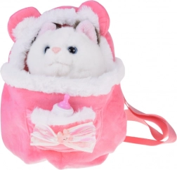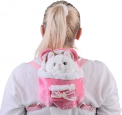 Dit knuffelige pluchen katertje in een roze rugzakje is ideaal voor kinderen die graag voor huisdiertjes zorgen. Dankzij de buigzame pootjes kan het kind hem makkelijk laten zitten, liggen of staan, en het hartslag-effect in het buikje geeft het spel warmte en authenticiteit. De zachte vacht, geborduurde gezichtdetails en het schattige strikje maken hem tot een geweldige vriend voor knuffelen en reizen.