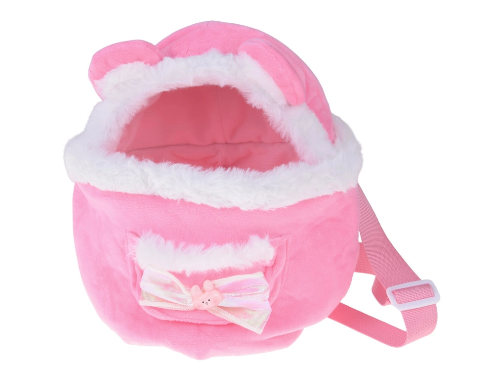 Schattige rugzak met oortjes, zachte bies en een vakje. Verstelbare schouderbanden zorgen voor draagcomfort en ruimte voor het flesje en accessoires.
