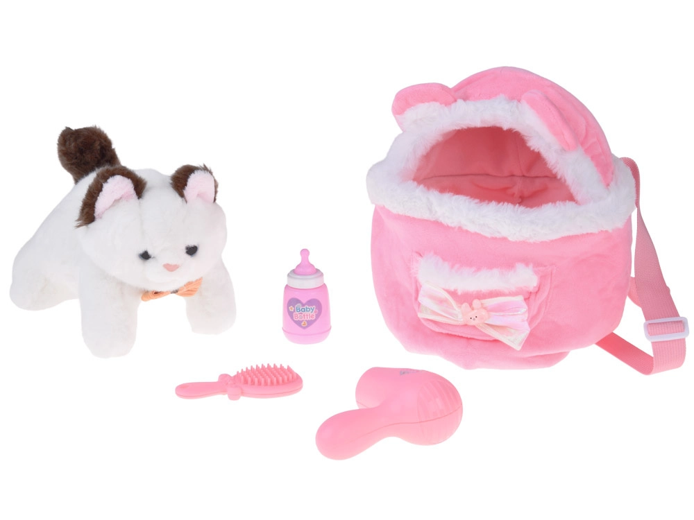 Bij de set hoort een pluchen rugzak met oortjes en een superzachte randafwerking, met verstelbare bandjes en een klein vakje voor accessoires. De set bevat een voedingsflesje, een kam om te borstelen en een speelgoedföhn om de vacht te stylen. De set stimuleert empathie, verantwoordelijkheid en fantasie bij kinderen – een geweldig cadeau voor alle katteliefhebbers.