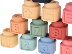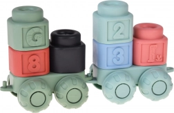 Deze veelzijdige educatieve set combineert bouwen, sorteren en stimulerend sensorisch spel. De zachte, samendrukbare blokken met veilig afgeronde randen liggen prettig in de hand, zijn mild voor het tandvlees en sommige elementen piepen zachtjes bij indrukken – dat wekt kinderlijk plezier en verlengt de geconcentreerde speeltijd.
