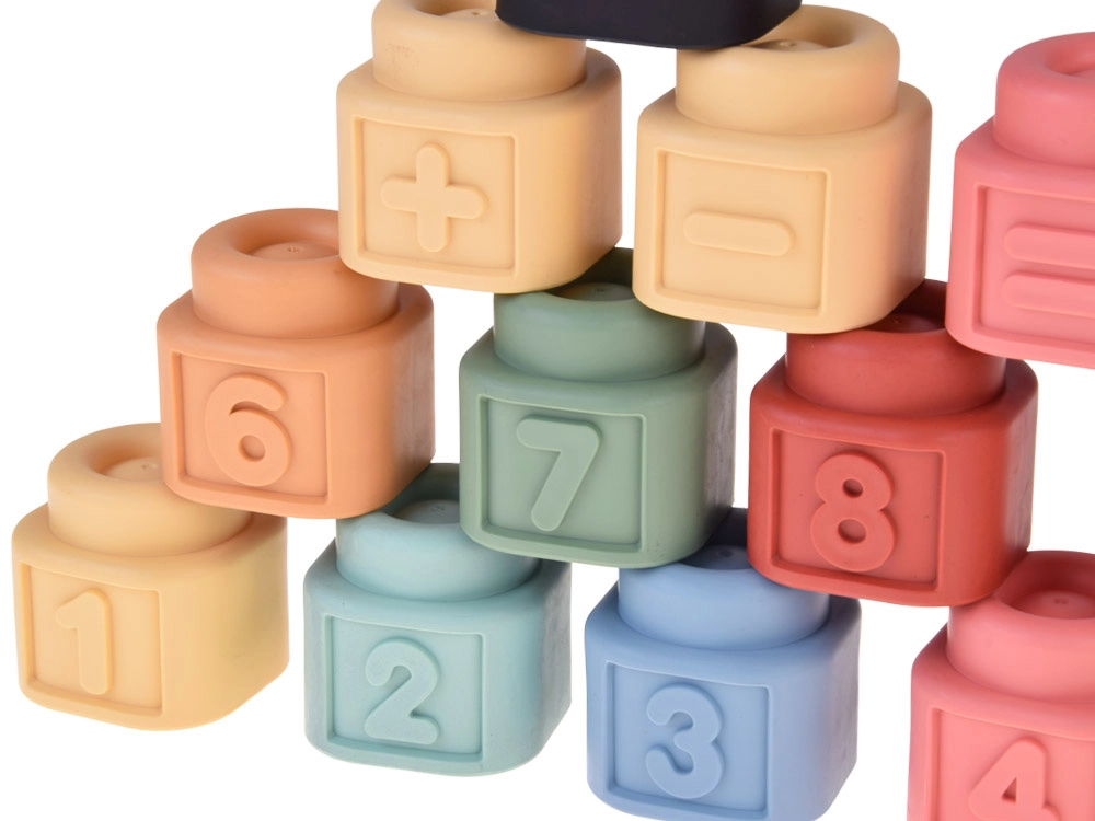 Het zachte, samendrukbare en niet-giftige materiaal ligt fijn in de hand en is vriendelijk voor het tandvlees – de blokken kunnen ook als bijtspeeltje dienen. Afgeronde randen verhogen de veiligheid tijdens het spelen.