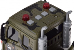 Maak je klaar voor actievolle missies met deze complete militaire set: transportvrachtwagen met oplegger, tank en helikopter in camouflagekleuren. De speelgoedvoertuigen hebben vrijloop voor soepel rijden, de helikopter heeft draaiende rotors en de tank een draaiende koepel. De vrachtwagen biedt bovendien licht- en geluidseffecten voor een nog realistischer spel. Ideaal voor kinderen die dol zijn op militair speelgoed, materieeltransport en fantasierijke reddingsacties.