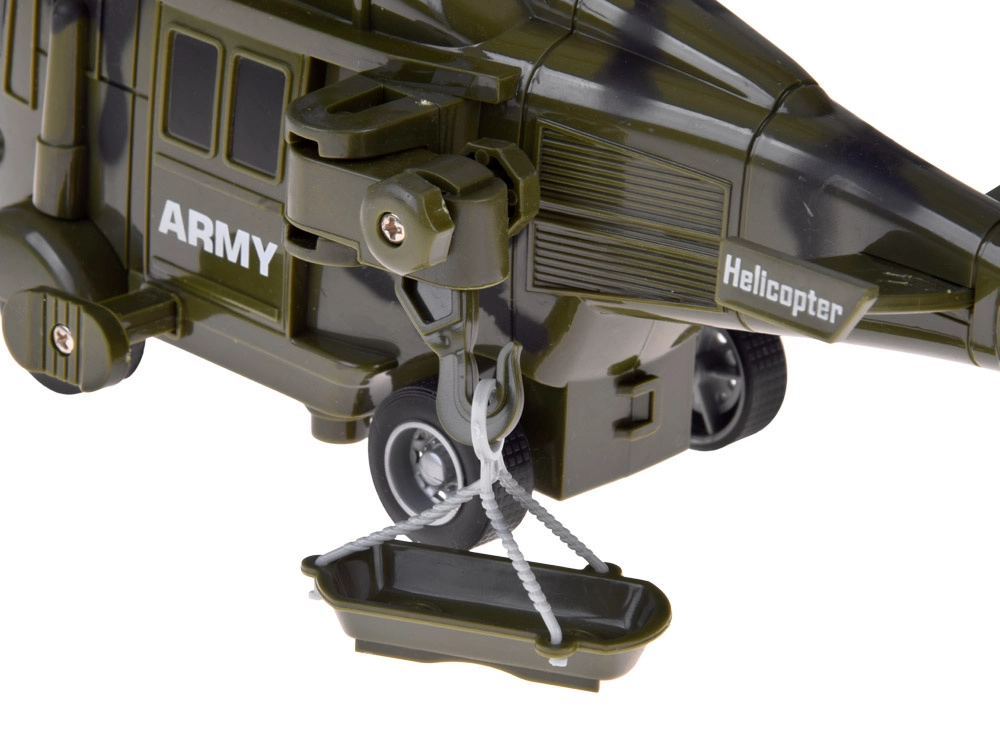 De helikopter heeft een draaiende rotor en een werkende lier met mandje om kleine voorwerpen op te takelen. De tank is uitgerust met een draaiende koepel en beweegbaar kanon. Alle modellen zijn uitgevoerd in groene camouflage met legeropdrukken voor maximale realiteitswaarde.
