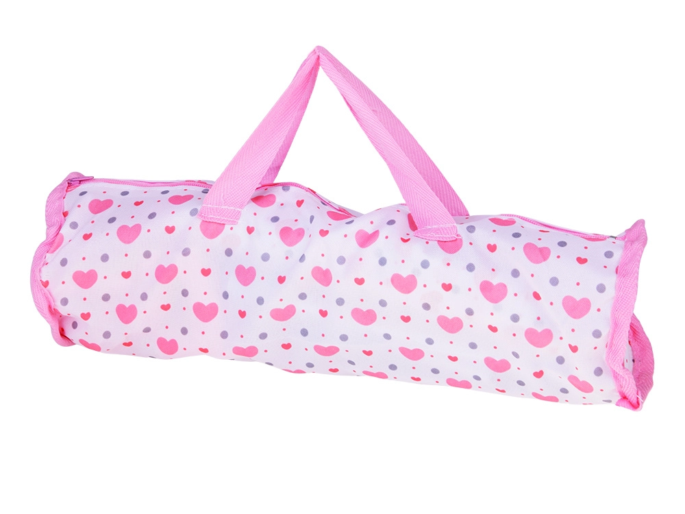 De hele collectie is uitgevoerd in zachte, pasteltinten met hartjes- en stippenmotief en oogt knus en stijlvol. Dankzij het lichte metalen frame van de wandelwagen en het eenvoudige inklapsysteem is spelen én opbergen comfortabel en veilig. De set stimuleert empathie, fantasie en sociale vaardigheden van kinderen.