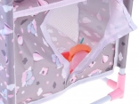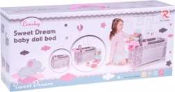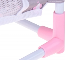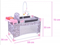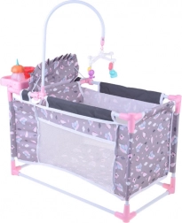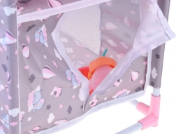 Het ledikant is geschikt voor poppen van ongeveer tot 40 cm en staat op een stabiel metalen frame met ademende mesh zijkanten. Zachte kleuren met roze en grijze details staan prachtig in de kinderkamer. In de verpakking zit alles wat nodig is voor volwaardig rollenspel als ouder.