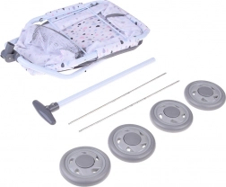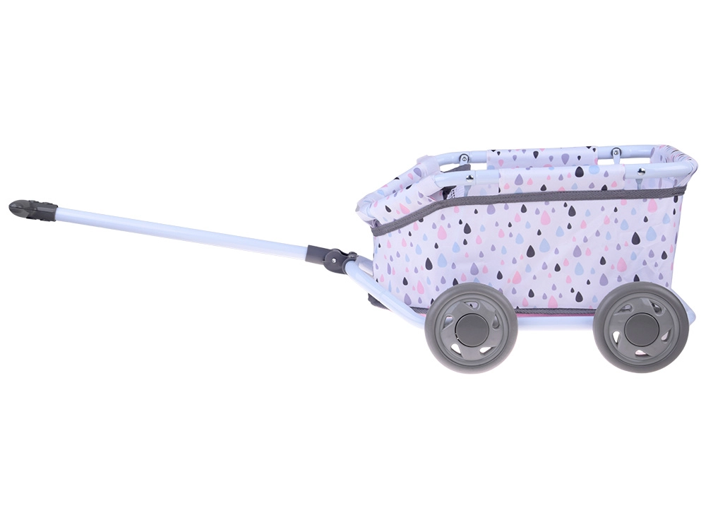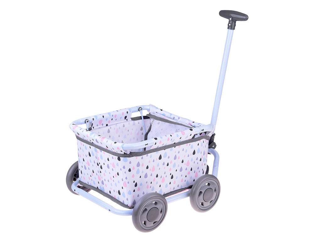 Deze stijlvolle kar met pastel druppelpatroon is ideaal voor dagelijks spel, wandelingen door het huis en in de tuin. De lichte metalen constructie en de zachte textiele mand bieden comfortabele ruimte voor een pop, knuffel en kleine accessoires.